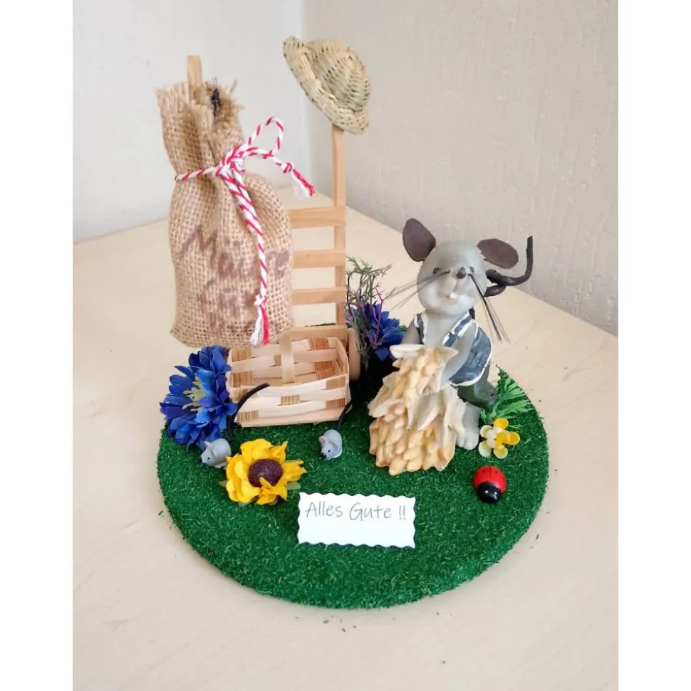 Ob als kreatives Geschenk, Gutschein-Verpackung oder liebevolles Detail auf Deiner Festtafel, dieses Deko-Highlight sorgt immer für Aufmerksamkeit. Mit dem Spankorb kannst Du Süßigkeiten, Früchte oder kleine Schnäpschen arrangieren, während im Geldsack die zu verschenkenden Mäuse ihren Platz finden. Die lustige Maus rundet das Arrangement ab und verleiht dem Geschenk einen natürlichen Charme.