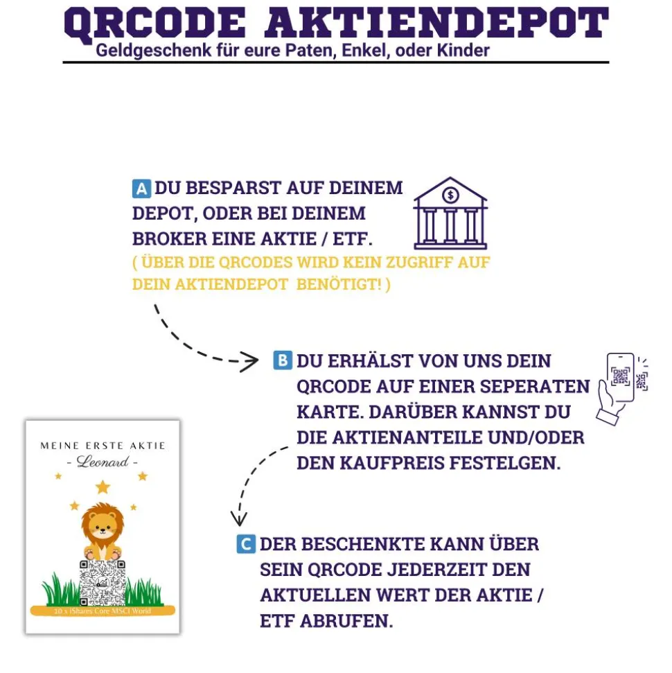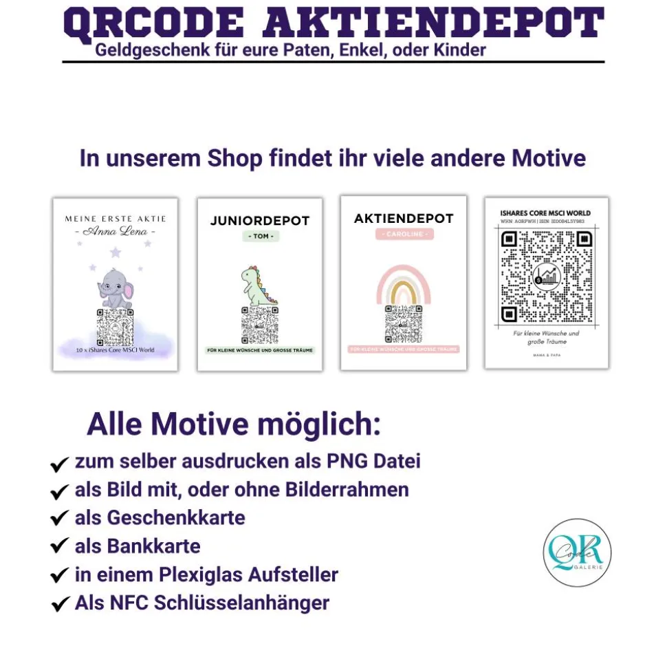 ❤️️ Du möchtest deinem Patenkind, Enkelkind, oder deinen Kindern eine Aktie, Etf, Kryptowährung schenken? Und bist noch auf der Suche nach einer schönen Verpackung? Dann ist diese QrCode Geschenkkarte perfekt.