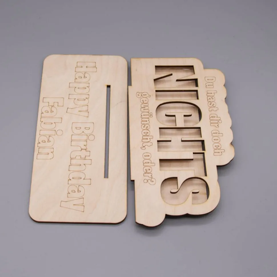 Geldgeschenk Nichts – aus Holz personalisiert