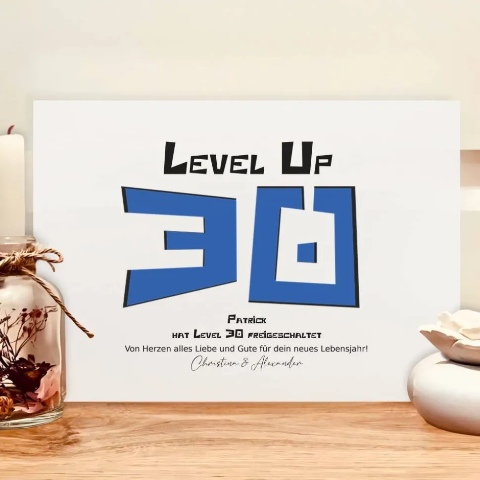 Du suchst nach einer originellen Geschenkidee für einen echten Gamer? Mit dem Geldgeschenk personalisiert zum 30. Geburtstag Mann verschenkst du nicht einfach nur Geld, sondern ein liebevoll gestaltetes Erinnerungsstück. Das Design im Retro-Look mit dem Spruch „Level up – Du hast Level 30 freigeschaltet“ und einer kunstvoll ausgeschnittenen 30 macht dieses Präsent zum Eyecatcher.
