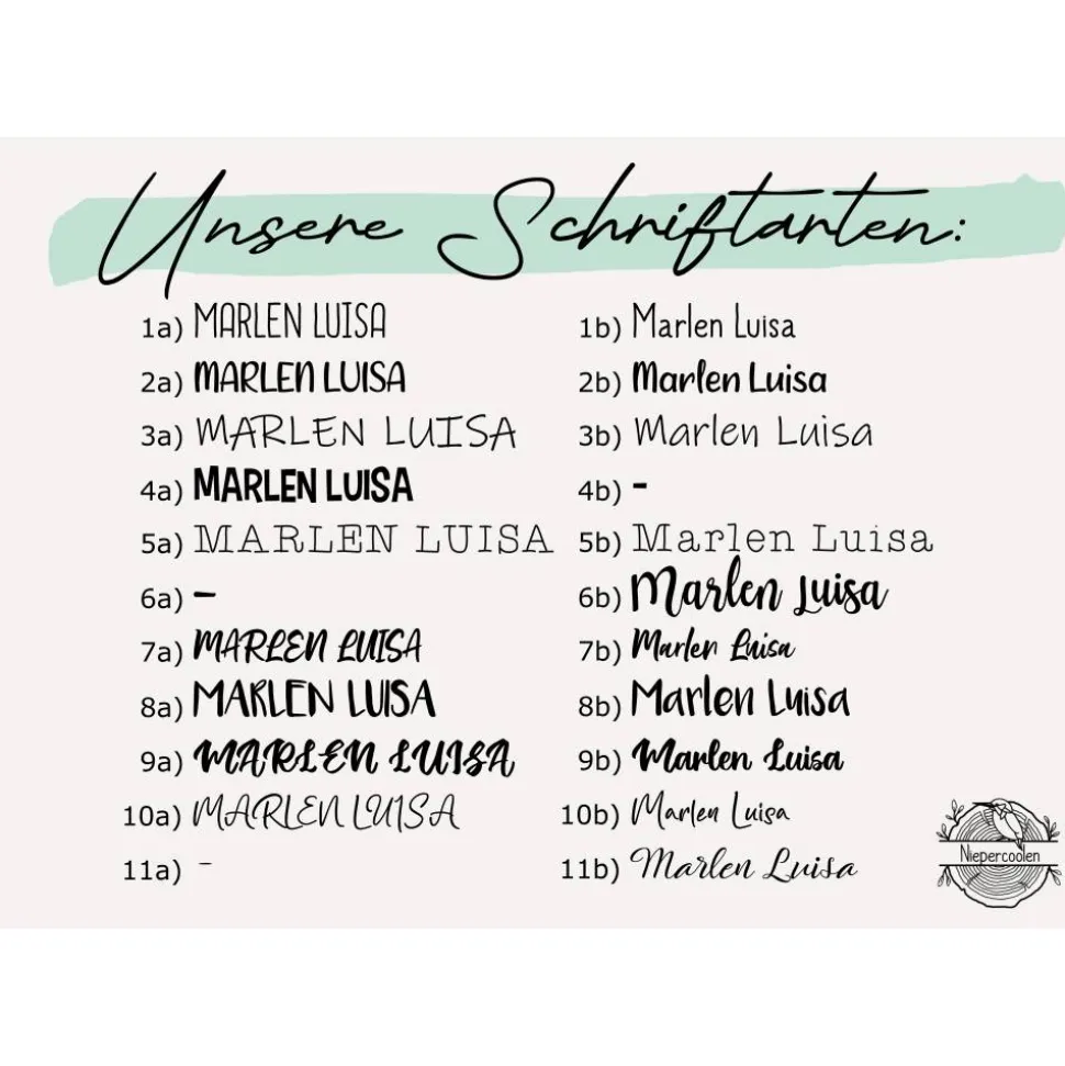 Wenn ihr Abweichungen von der Personalisierungsvorlage wünscht, schreibt es uns bitte mit einem Kommentar. Andernfalls übernehmen wir die Schreibweise (&-Zeichen , Monat ausgeschrieben) wie auf den Beispielbildern.