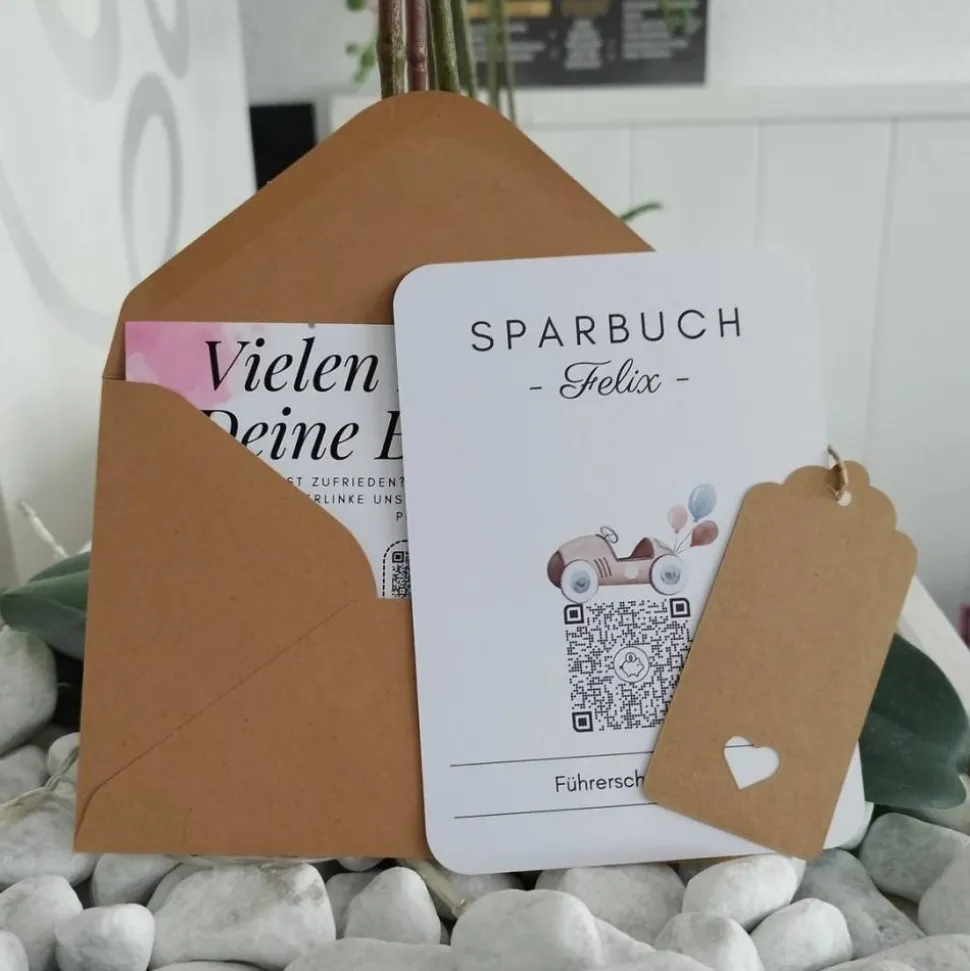 Schreibe die erste Bewertung für „Geldgeschenk | Personalisiertes Sparbuch | QrCode Postkarte DIN A6 inkl. Briefumschlag & Anhänger | Führerschein“ Antworten abbrechen
