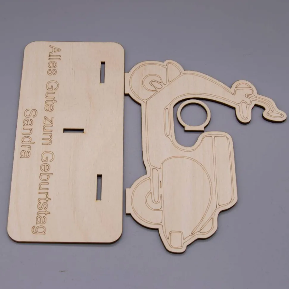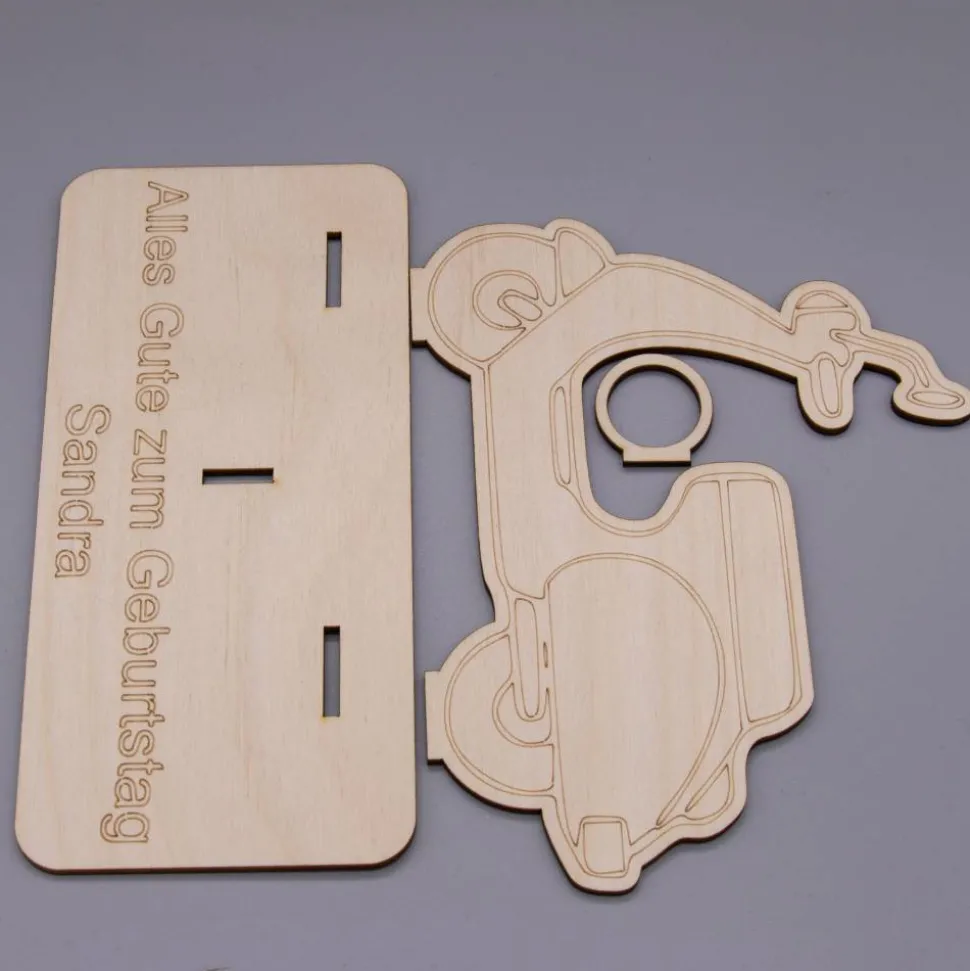 Unser Geldgeschenk aus 3 mm Birkensperrholz bietet nicht nur eine stilvolle Präsentation für Geldscheine, sondern kann auch als dekoratives Element in jedem Zuhause dienen. Es kann an der Wand aufgehängt oder auf einem Regal platziert werden, um eine wunderbare Erinnerung an den besonderen Anlass zu schaffen.