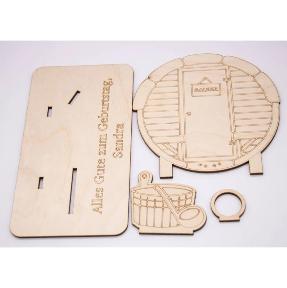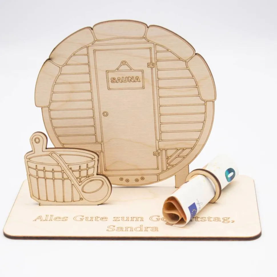 Geldgeschenk Sauna - aus Holz personalisiert