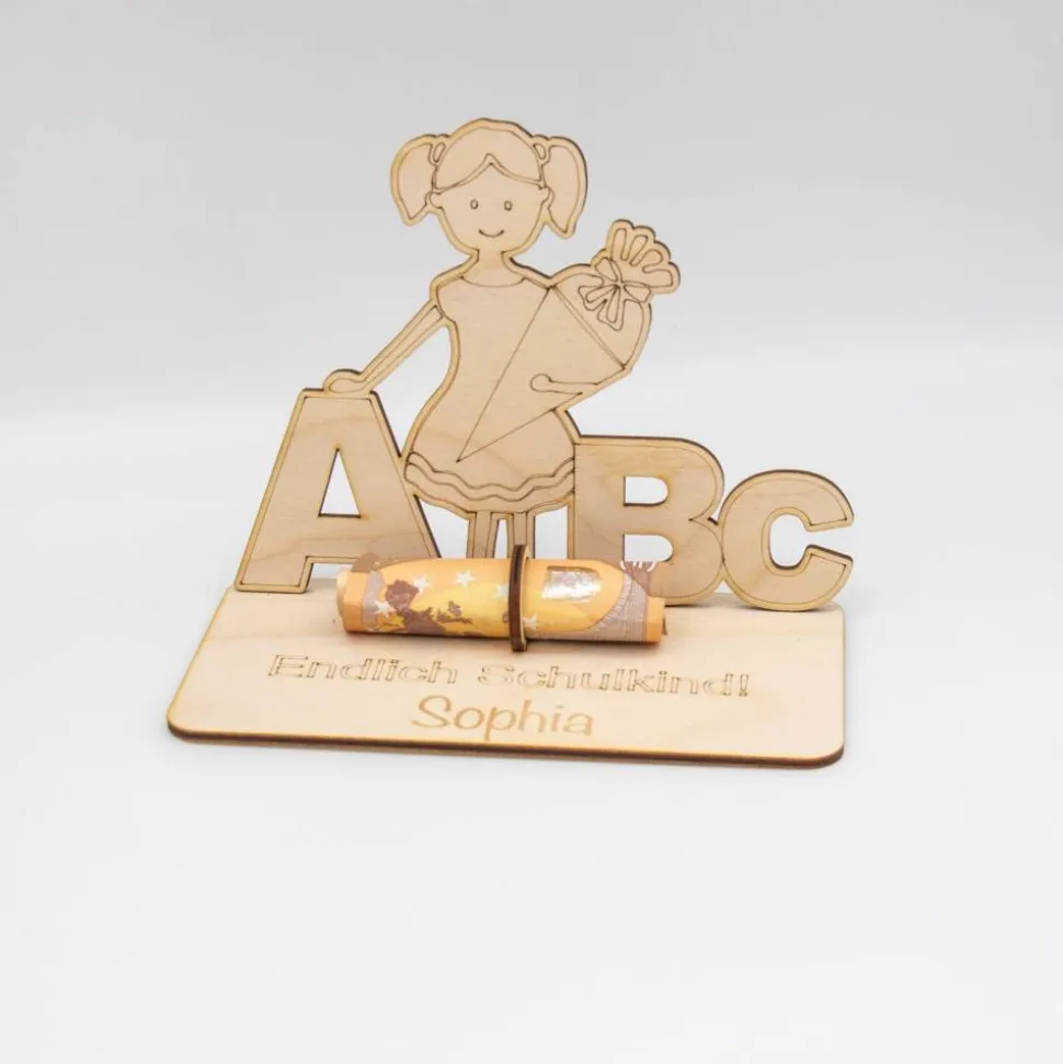 Dieses einzigartige Geldgeschenk zum Schulstart ist die perfekte Möglichkeit, den Übergang Ihres Kindes in die Schule zu feiern. Es wird nicht nur eine dauerhafte Erinnerung an diesen besonderen Tag sein, sondern kann auch als Dekorationsstück in ihrem Zimmer dienen. Die natürliche Holztextur und das detaillierte Design fügen sich nahtlos in jede Raumdekoration ein.