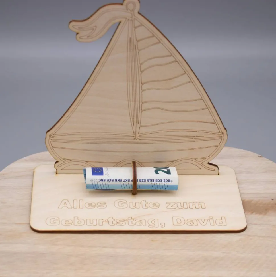 Geldgeschenk Segelboot - aus Holz personalisiert