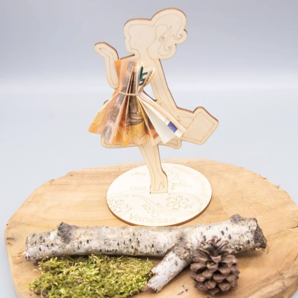 Unser Geldgeschenk aus 3 mm Birkensperrholz bietet nicht nur eine stilvolle Präsentation für Geldscheine, sondern kann auch als dekoratives Element in jedem Zuhause dienen. Es kann an der Wand aufgehängt oder auf einem Regal platziert werden, um eine wunderbare Erinnerung an den besonderen Anlass zu schaffen.