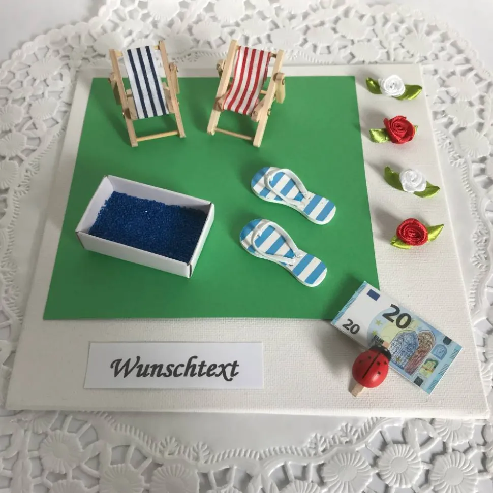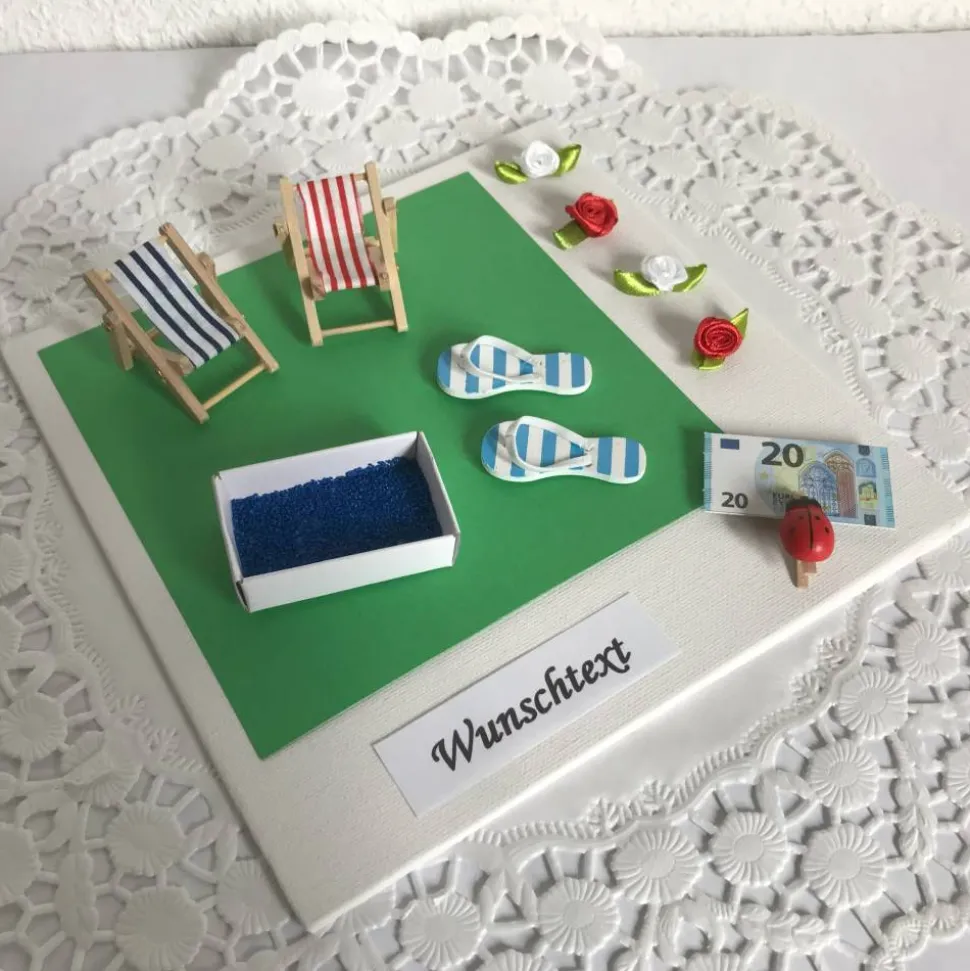 – Schild mit „Wunschtext“. Hier kann gerne ein von Ihnen gewünschter Text aufgedruckt werden. Z. B. Für euren Swimmingpool, Für einen neuen Swimming Pool, Zur Poolparty, Ein Zuschuss zum neuen Pool. Geben Sie den Text bitte einfach unten im dafür vorgesehenen Feld ein. Sollten sie kein Schild wünschen, kann dieses problemlos weg gelassen werden. Hinweis: Das Schild wird auf weißes Papier gedruckt.