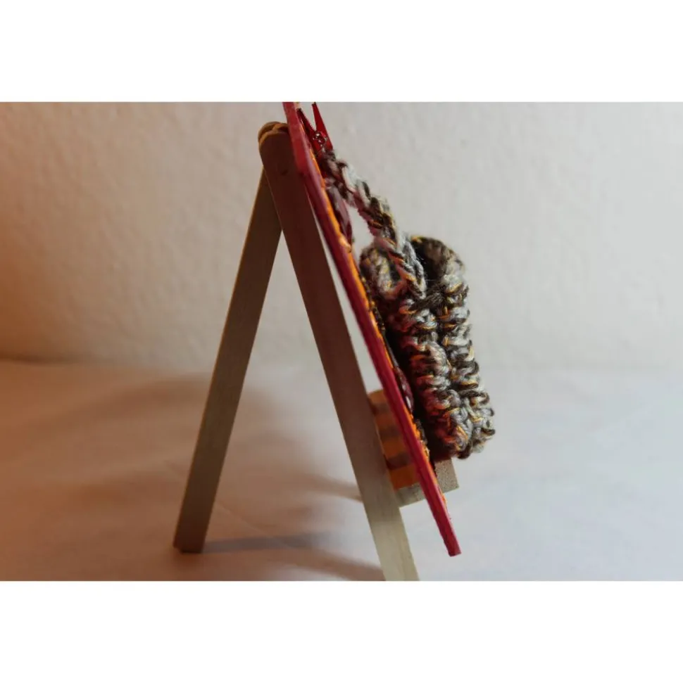 Leinwand, Holzstaffelei, Kunststoff, Wolle, Acrylfarben, Glitzersteine