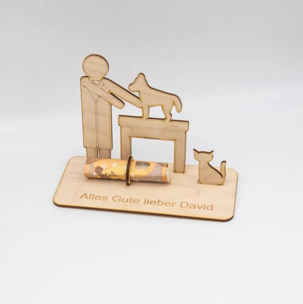 Geldgeschenk Tierarzt – aus Holz personalisiert