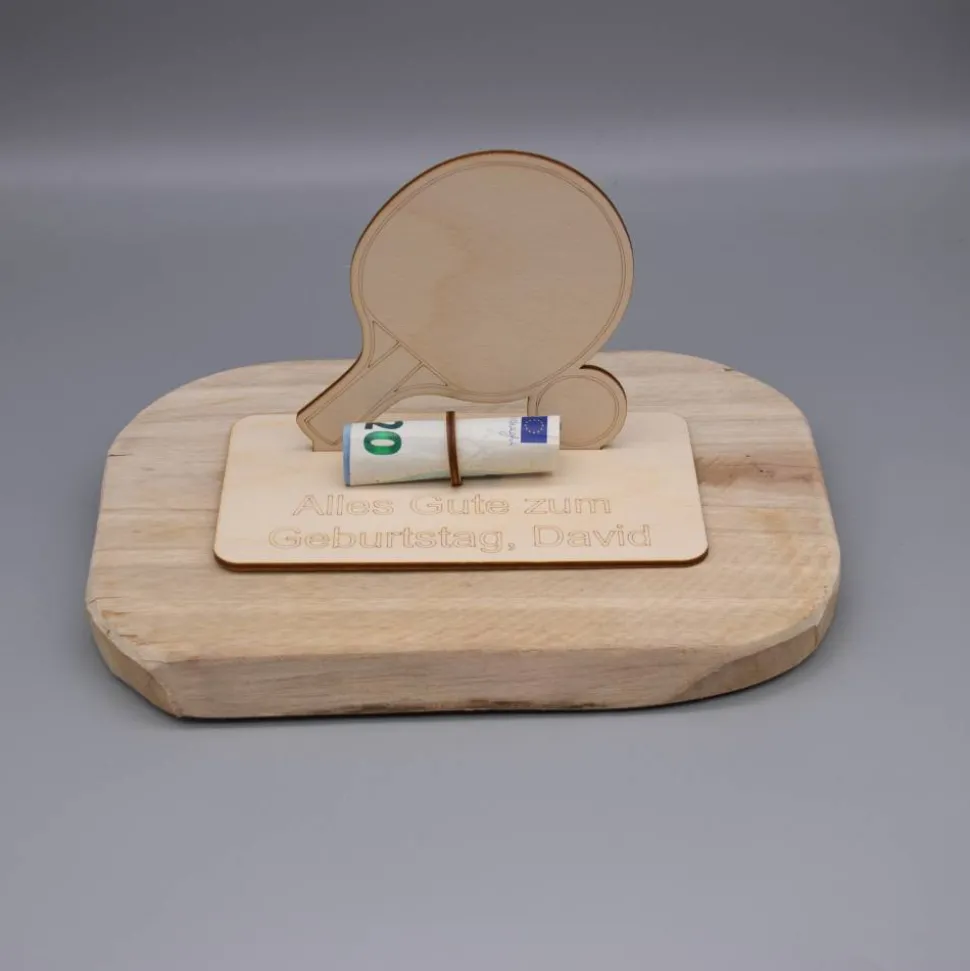 Geldgeschenk TIschtennis – aus Holz personalisiert
