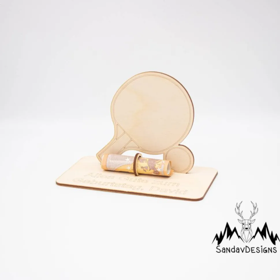 Geldgeschenk TIschtennis - aus Holz personalisiert