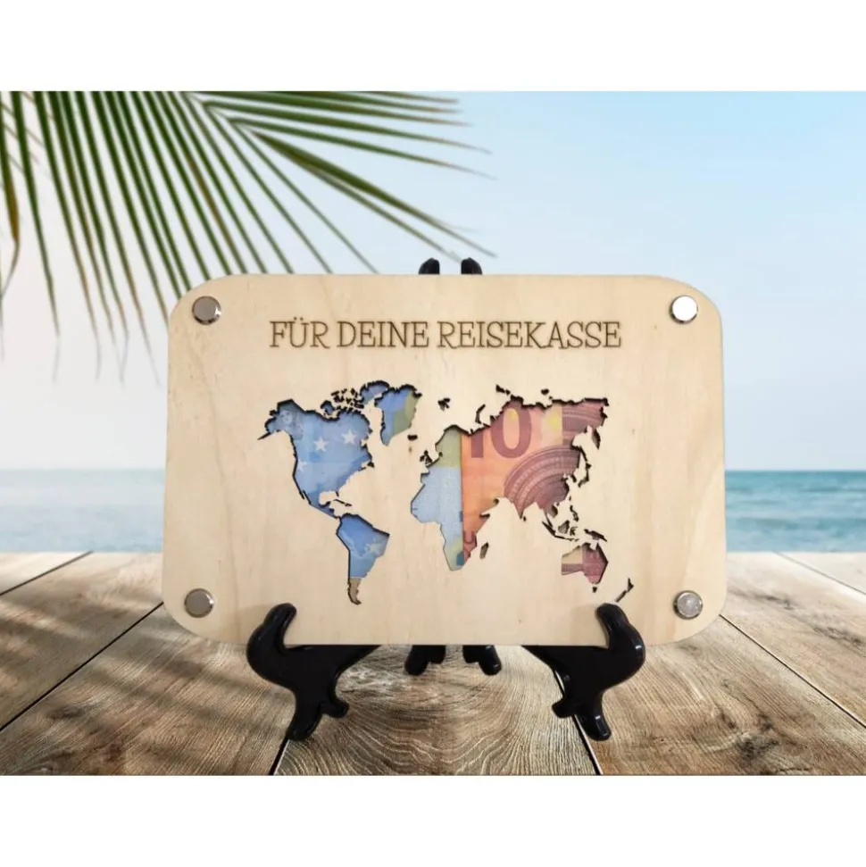 Unsere handgefertigte Sperrholz-Karte, präzise geschnitten durch modernste Lasertechnik, verleiht deinen Geldgeschenken für die Reisekasse eine einzigartige kreative Note. Personalisierbar mit individuellen Botschaften wird diese Karte zum stilvollen Blickfang, der lange in Erinnerung bleibt. Nicht nur als Geldgeschenk, sondern auch als dekoratives Element, Grußkarte oder personalisiertes Kunstwerk für jeden Raum geeignet. Das perfekte Geschenk für Abenteurer und Reiselustige! Erlebe jetzt, wie deine Geste zu einem unvergesslichen Reisehighlight wird.