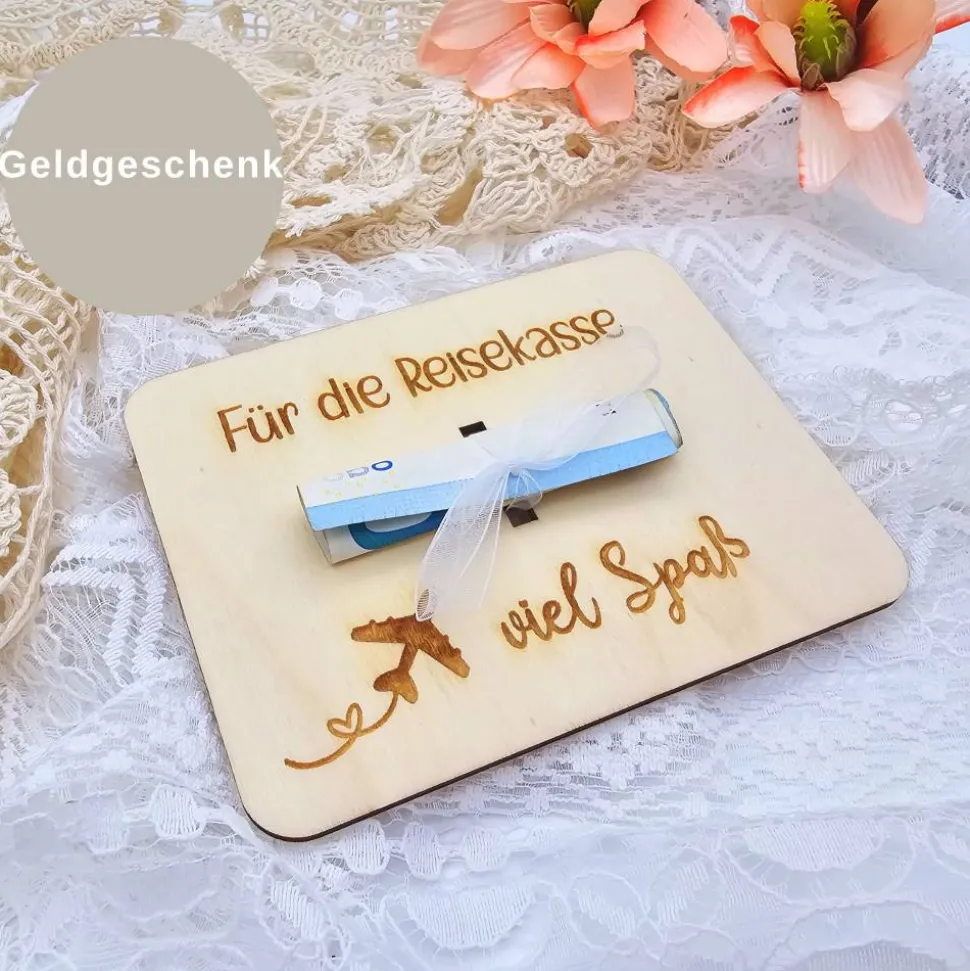 Unsere handgefertigte Urlaubskasse Geschenkverpackung aus hochwertigem Holz ist die ideale Lösung, um dein Urlaubsgeld stilvoll zu überreichen. Diese schöne und robuste Karte bietet genügend Platz für das Urlaubsgeld und wird garantiert ein Lächeln auf das Gesicht des Beschenkten zaubern. Egal ob für Geburtstage, Jubiläen oder als kleine Aufmerksamkeit vor dem nächsten großen Abenteuer – mit dieser schönen Geschenkverpackung liegst du immer richtig.