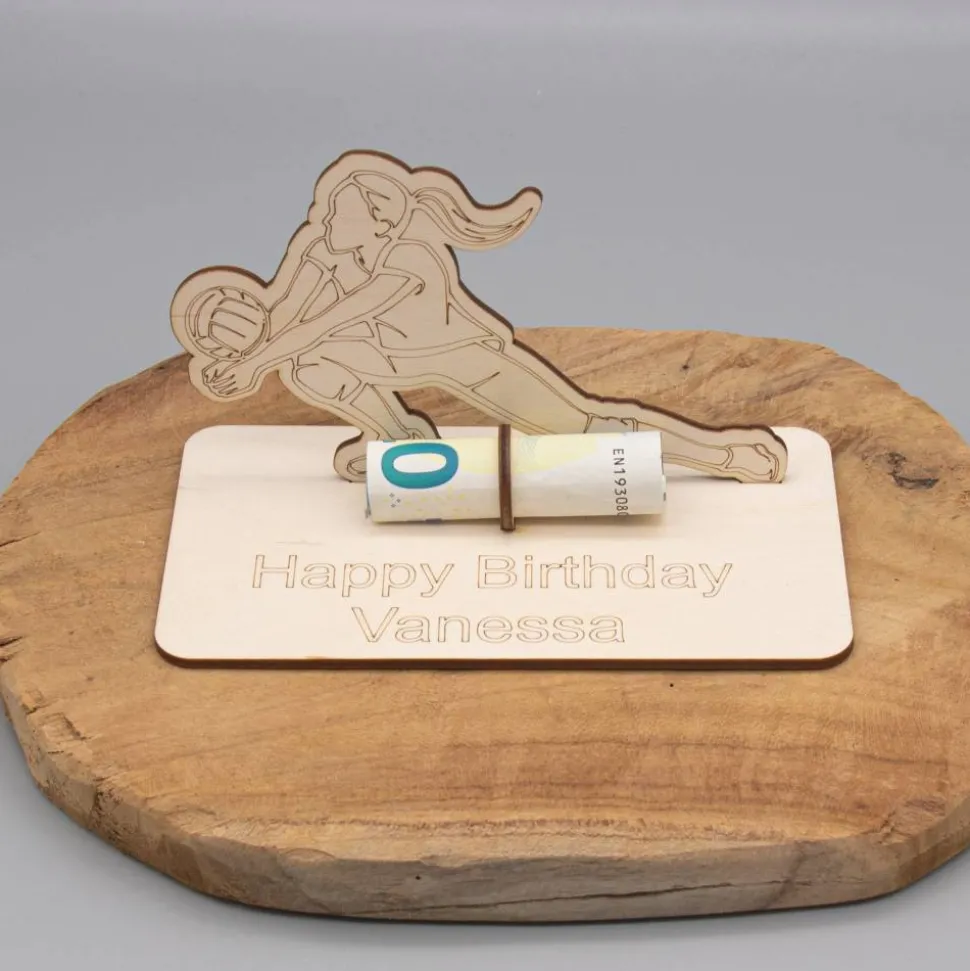 Suchen Sie nach dem perfekten Geschenk für einen Volleyballliebhaber? Unsere maßgeschneiderten Geldgeschenke aus Holz sind das ideale Präsent für jeden Anlass, sei es ein Geburtstag, ein Jubiläum oder ein spezieller Meilenstein. Handgefertigt aus qualitativ hochwertigem 3mm dickem Birkensperrholz, vereinen diese einzigartigen Stücke Kunsthandwerk, Qualität und Leidenschaft.