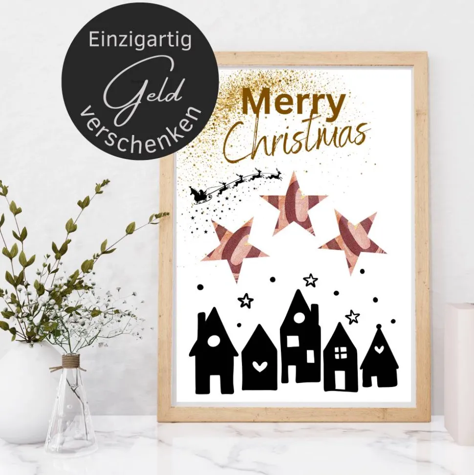 Über den Dächern funkeln die Geld-Sterne und lassen dem Beschenkten an Heiligabend die Augen leuchten und ein lächeln ins Gesicht zaubern.