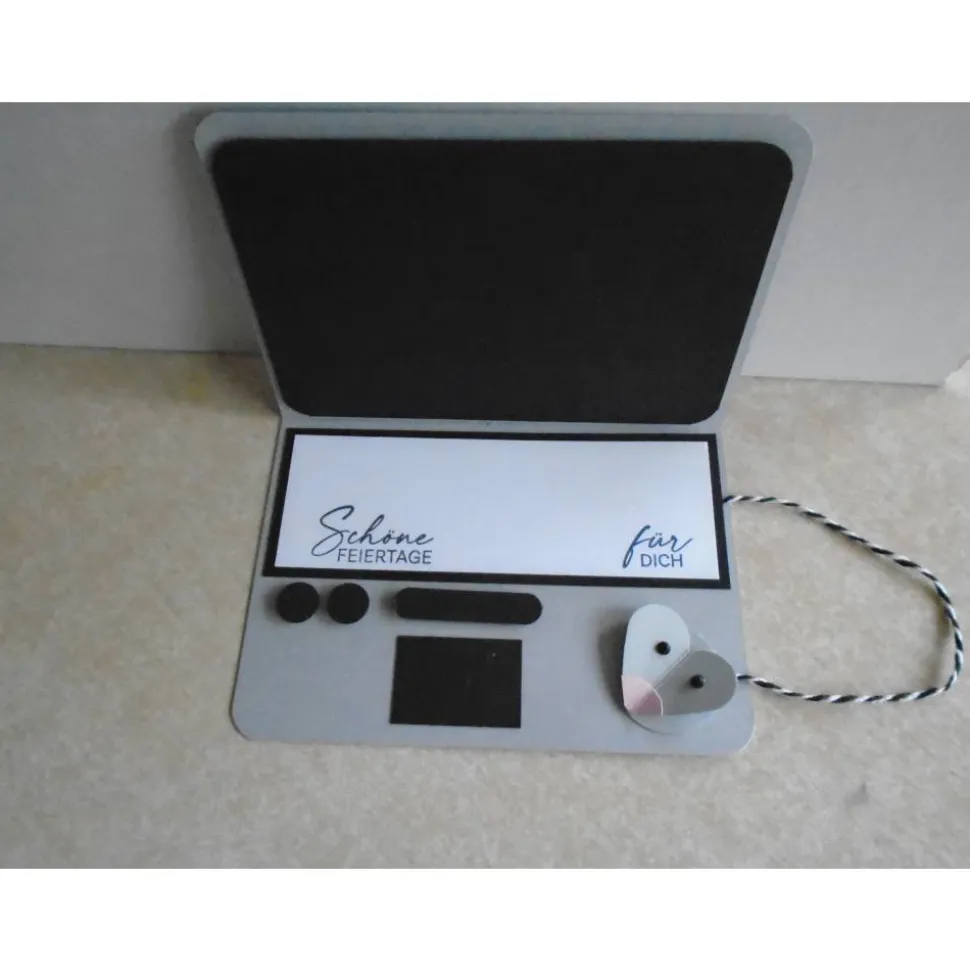 dieses hübsche Geldgeschenk Gutschein Laptopkarte zu Weihnachten hat ein Geldfach, und innen einen Gückwunschstempel, und genug Platz, wo man noch was nettes drauf schreiben kann siehe Bilder
