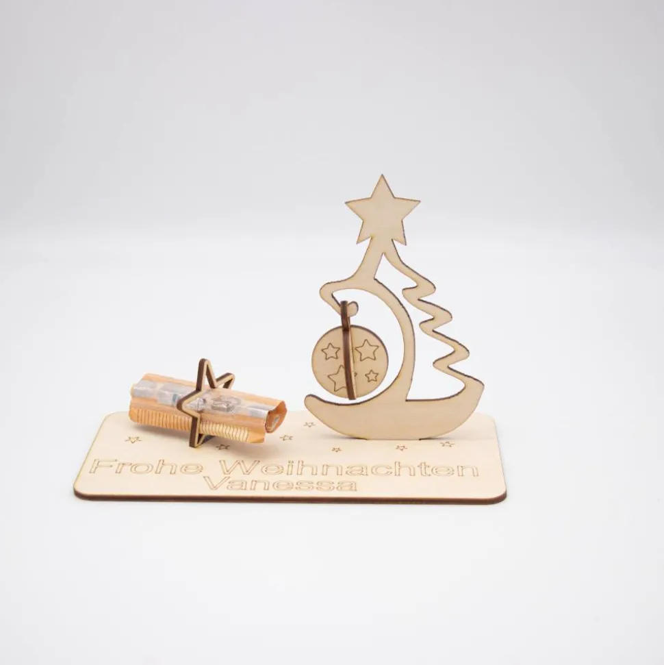 Unser Geldgeschenk aus 3 mm Birkensperrholz bietet nicht nur eine stilvolle Präsentation für Geldscheine, sondern kann auch als dekoratives Element in jedem Zuhause dienen. Es kann an der Wand aufgehängt oder auf einem Regal platziert werden, um eine wunderbare Erinnerung an den besonderen Anlass zu schaffen.