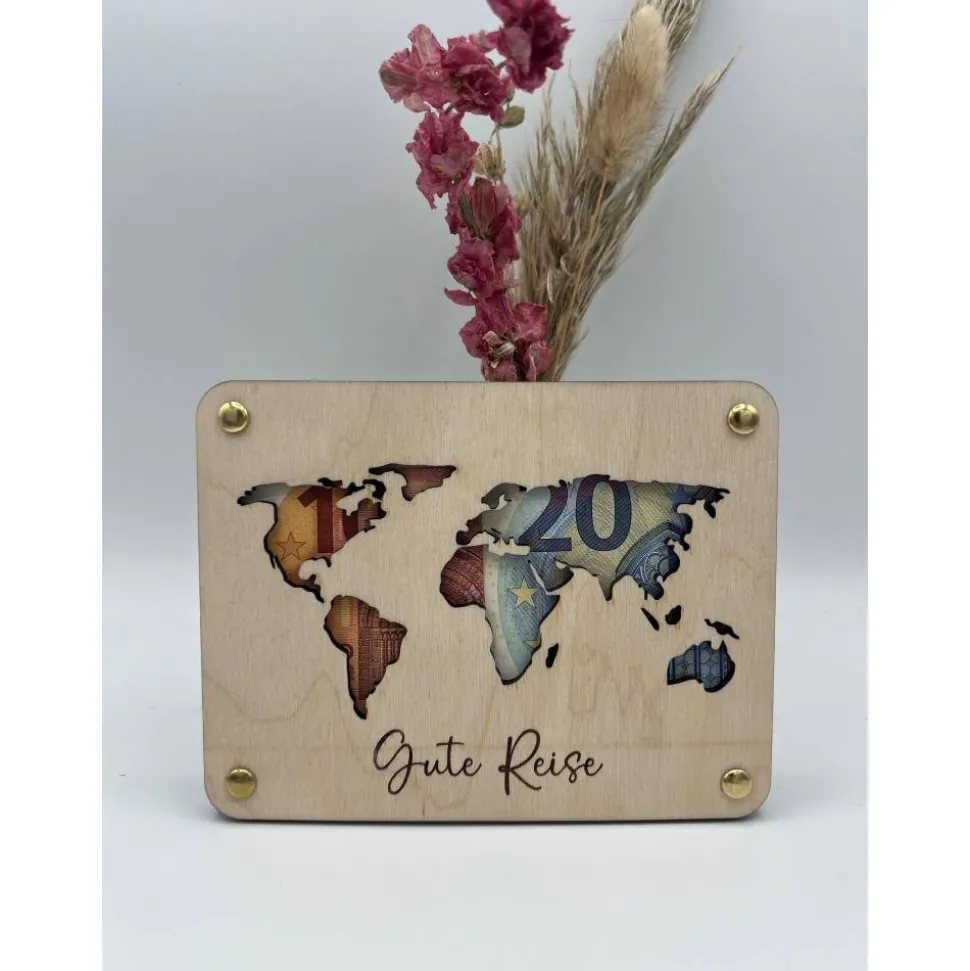 Entdecke das perfekte Geldgeschenk – eine edle Geschenkidee aus Holz mit Weltkarte!