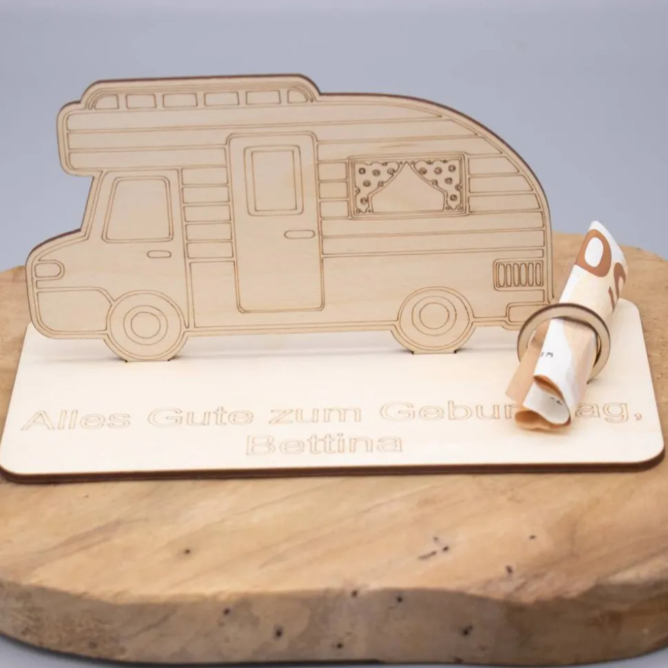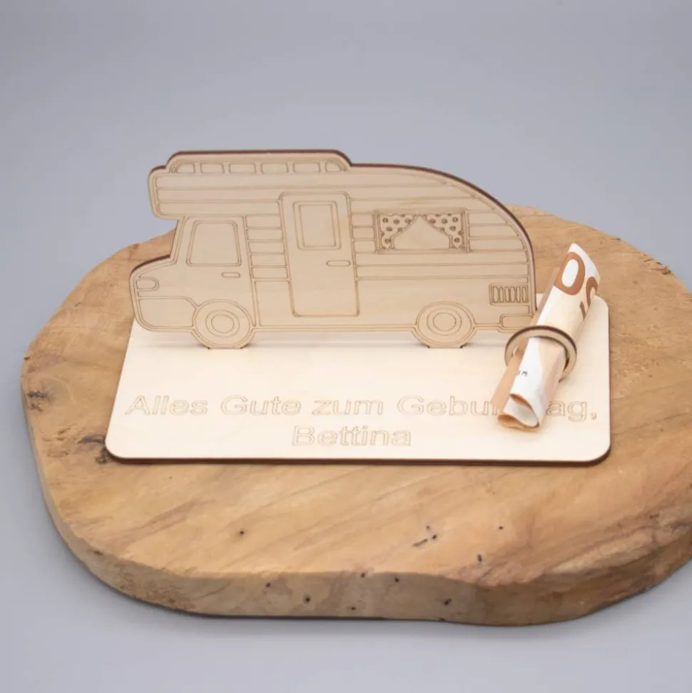Geldgeschenk Wohnmobil – aus Holz personalisiert