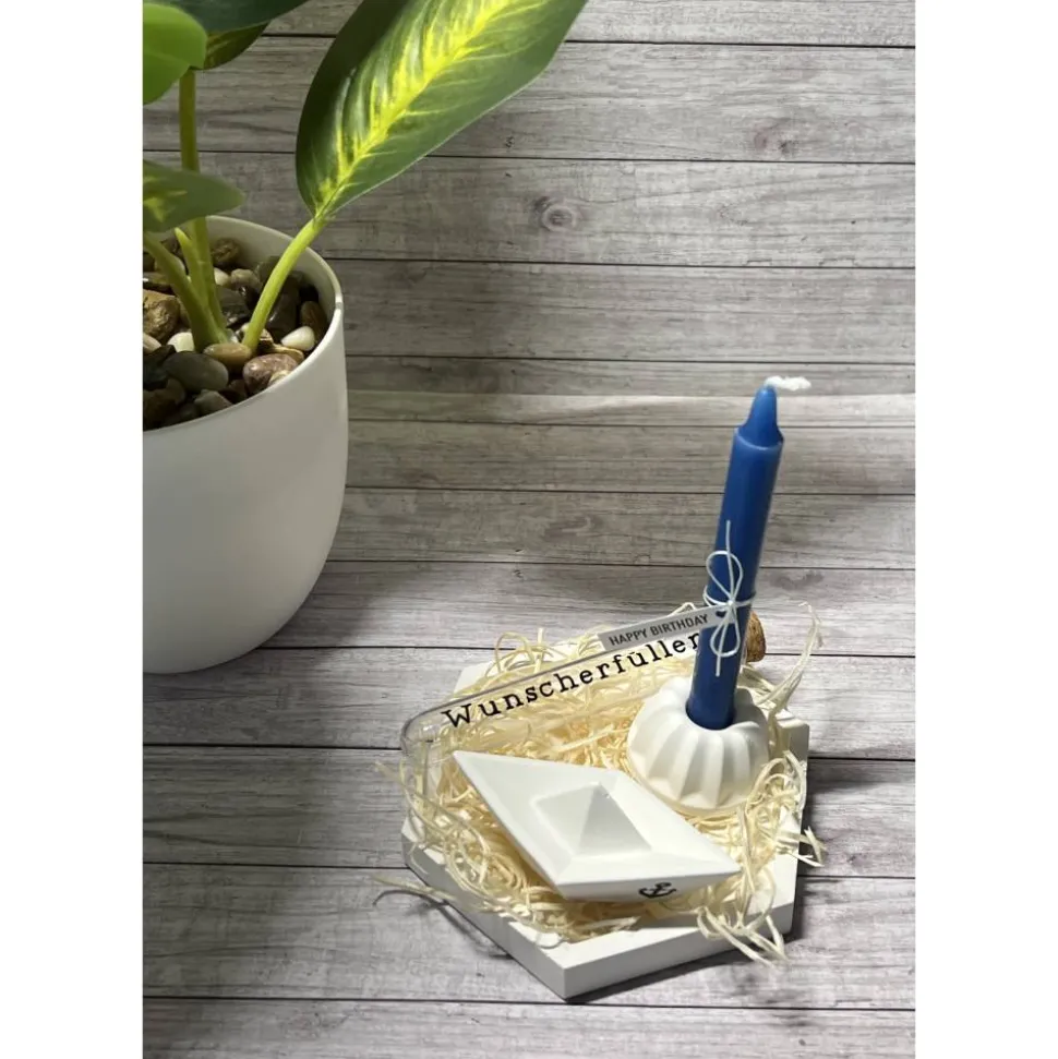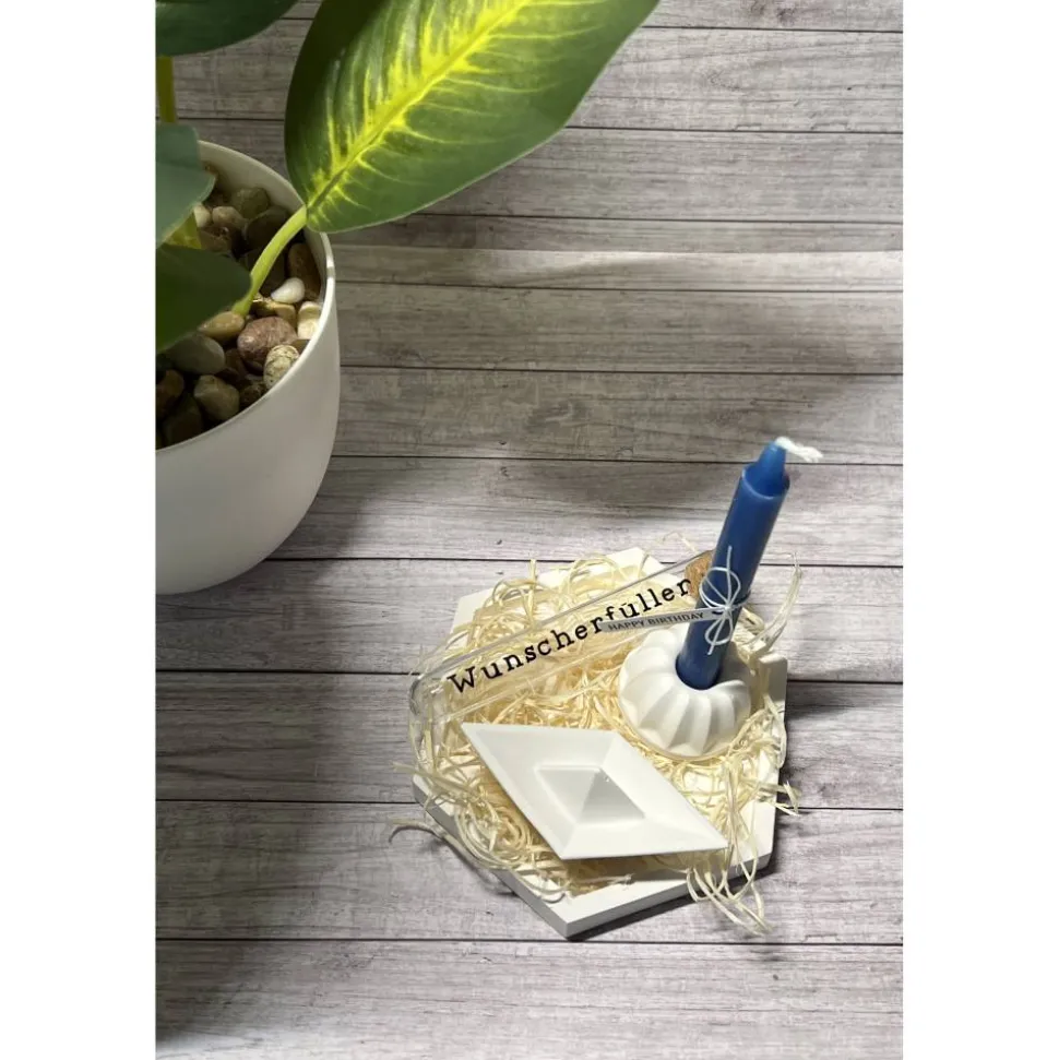 Eine schönes Geschenk, welches nachher komplett als Dekoration dienen kann. Dadurch das die Deko Elemente in weiß gehalten sind, sind sie zeitlos und passen sich jeder Homedeko an.