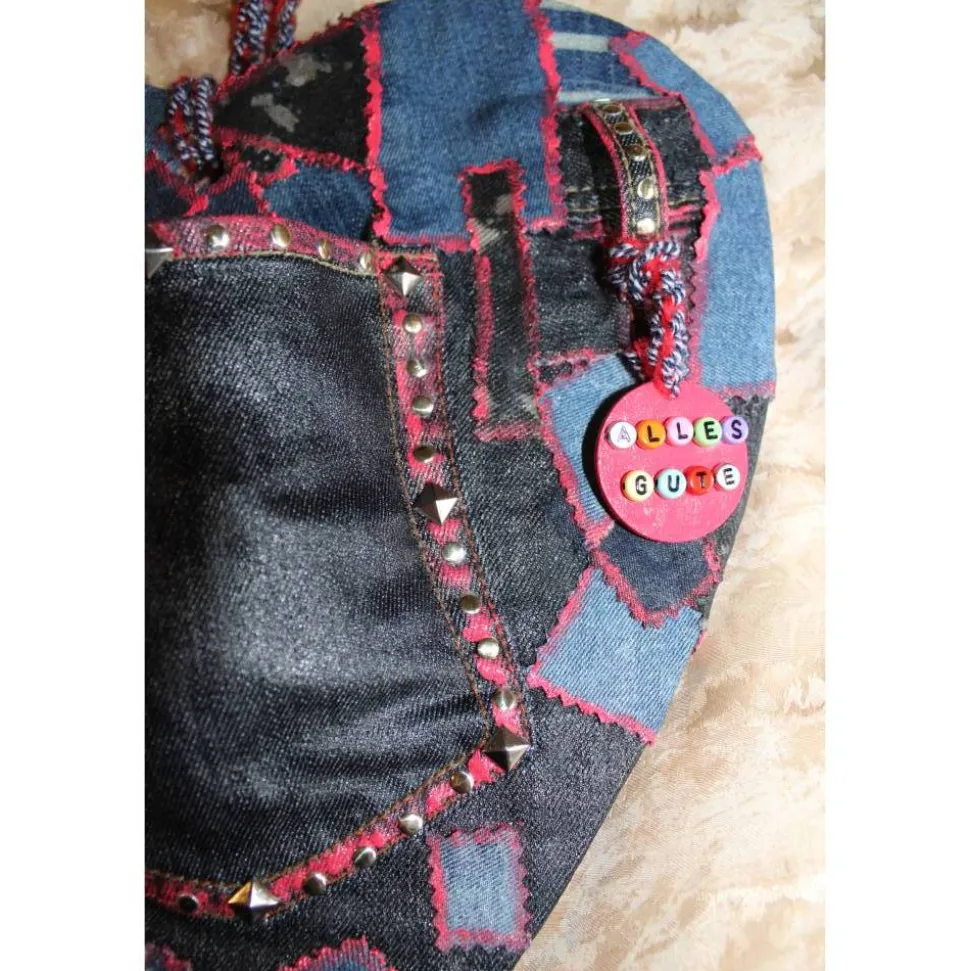 Dekoriert mit Holzanhänger, Nieten und Schriftzug „ALLES LIEBE“.