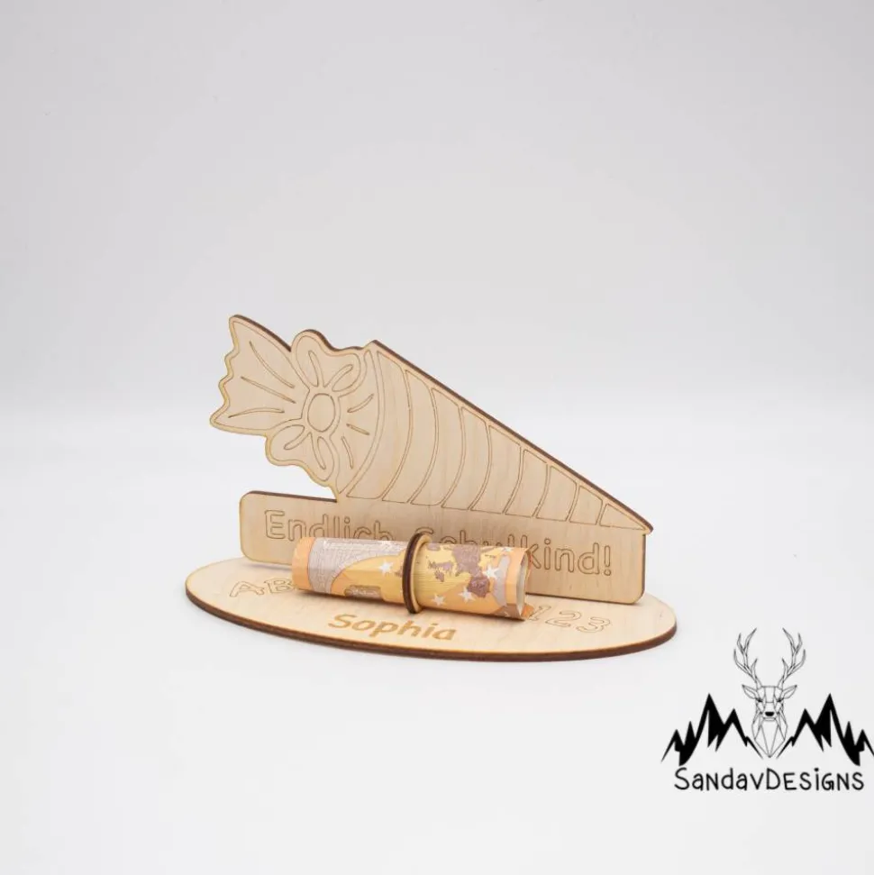 Geldgeschenk Zuckertüte – aus Holz personalisiert