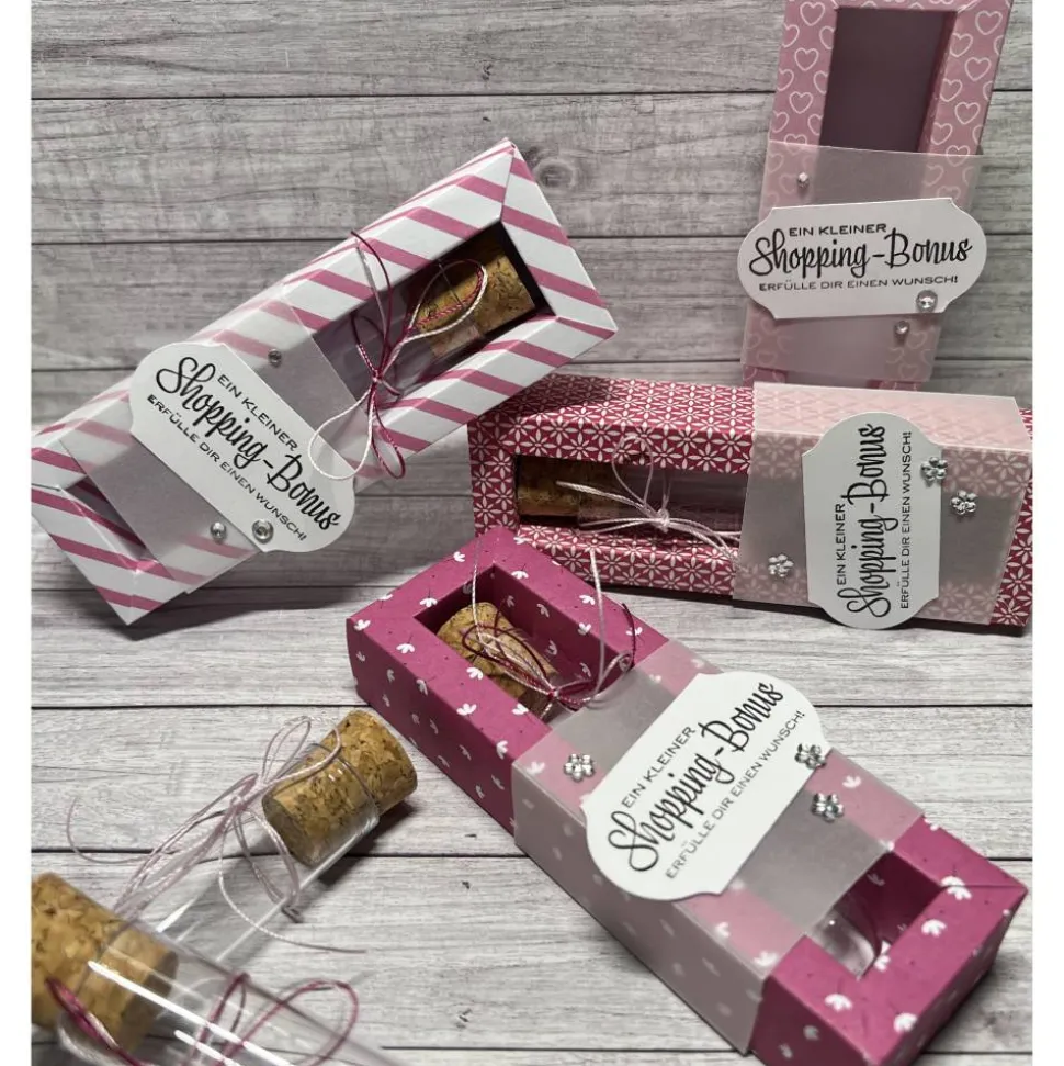 Dies ist eine schöne Idee um ein Geldgeschenk zu machen. Dazu den Geldschein aufrollen und in das Reagenzglas stecken und wieder mit dem Korken verschließen.