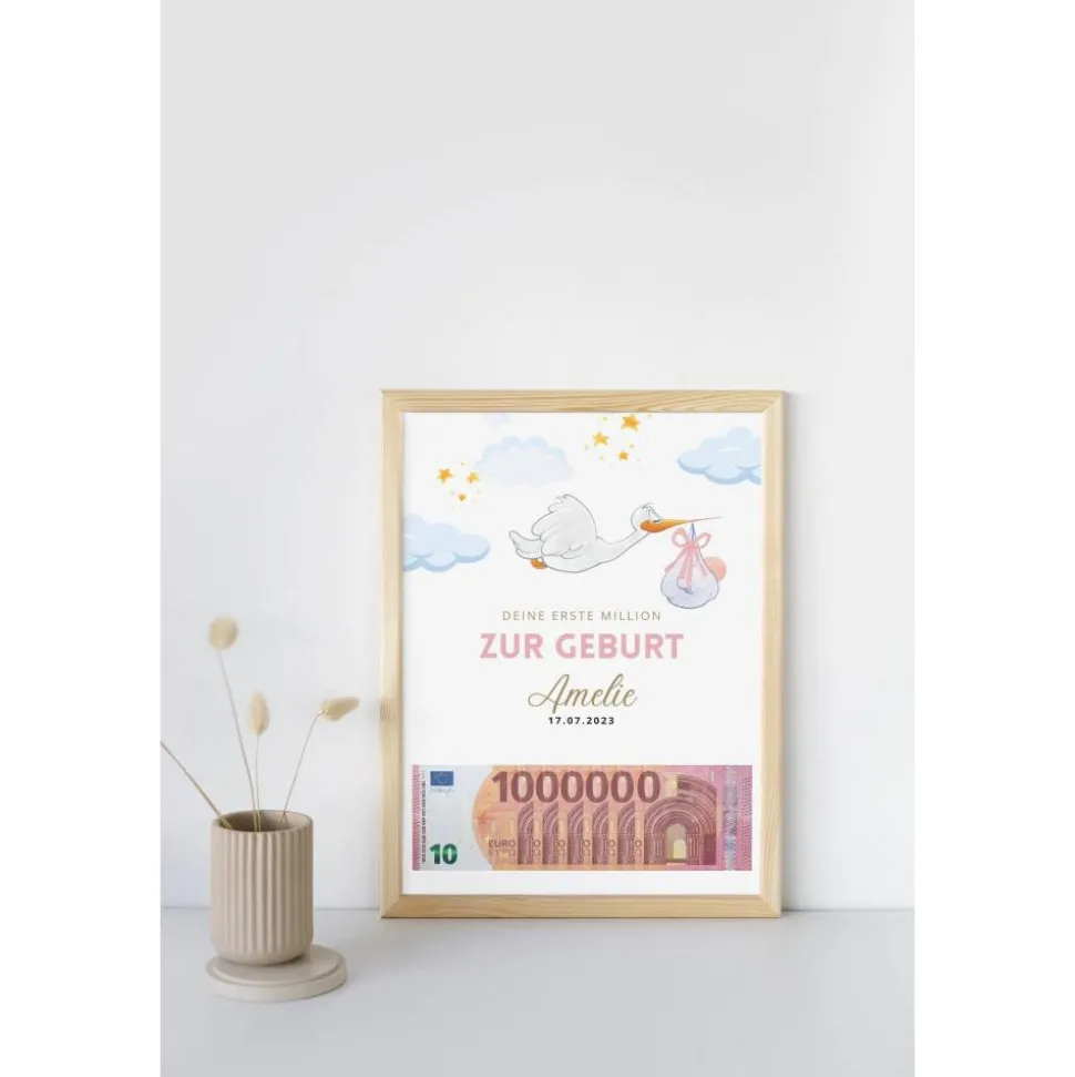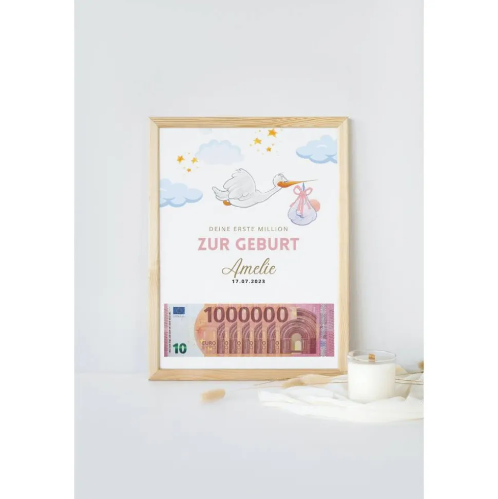 Geldgeschenk zur Geburt – deine erste Million | Geburtsgeschenk Geld personalisiert | personalisiertes Geschenk Geburt |
