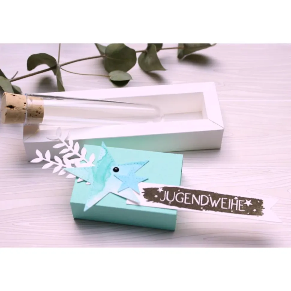 Die Gestaltung der Box spiegelt die Bedeutung und den feierlichen Charakter der Jugendweihe wider.
