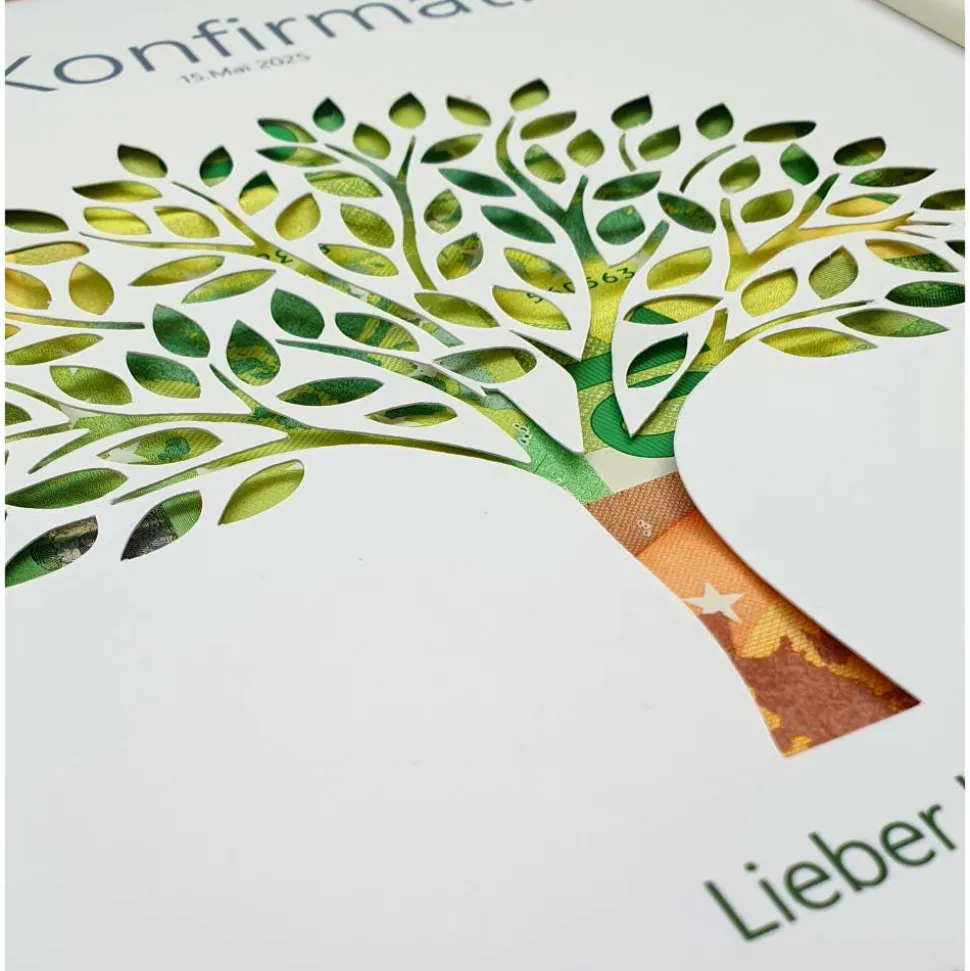 Den gewünschten Geldbetrag können Sie einfach zwischen dem Bild und dem dunkelgrauen Papier hinterlegen.
