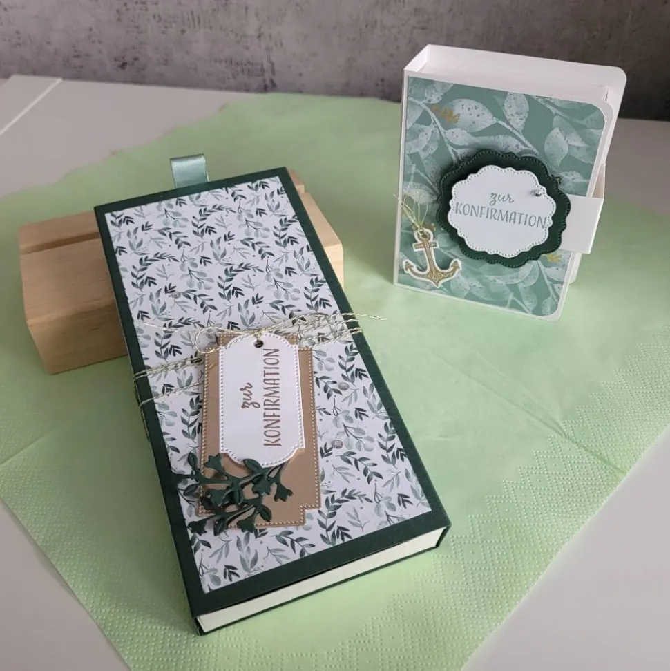 Farben: Lodengrün, Lagunenblau, Vanille und kleine goldene Akzente.