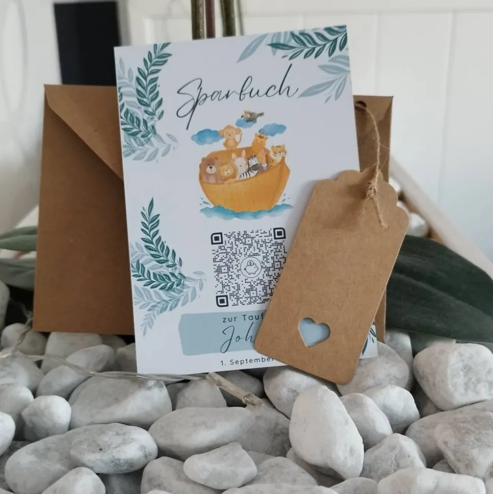 Geldgeschenk zur Taufe | Personalisiert | Digitale Spardose | QrCode Taufkarte | Arche Noah