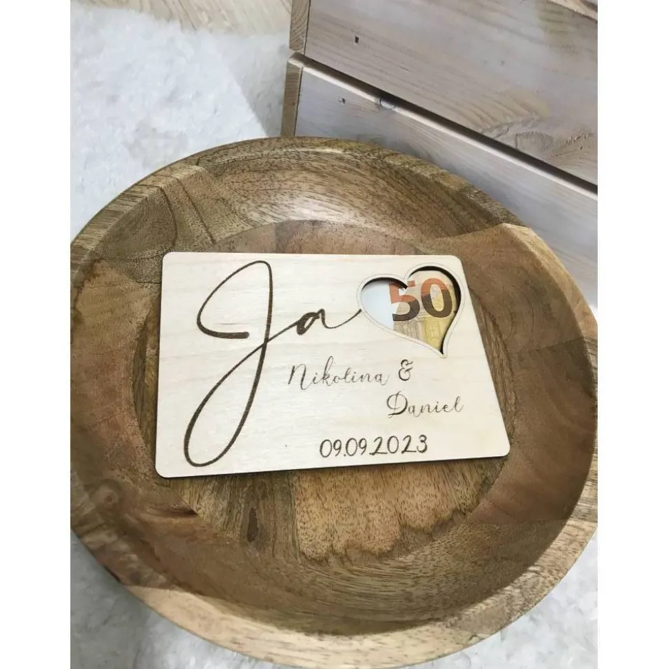 Holz ist ein Naturprodukt. Aufgrund der Maserung und der Äste unterscheidet sich jeder Artikel ein bisschen. Außerdem kann durch das Holz die Gravur manchmal dunkler oder auch heller ausfallen.