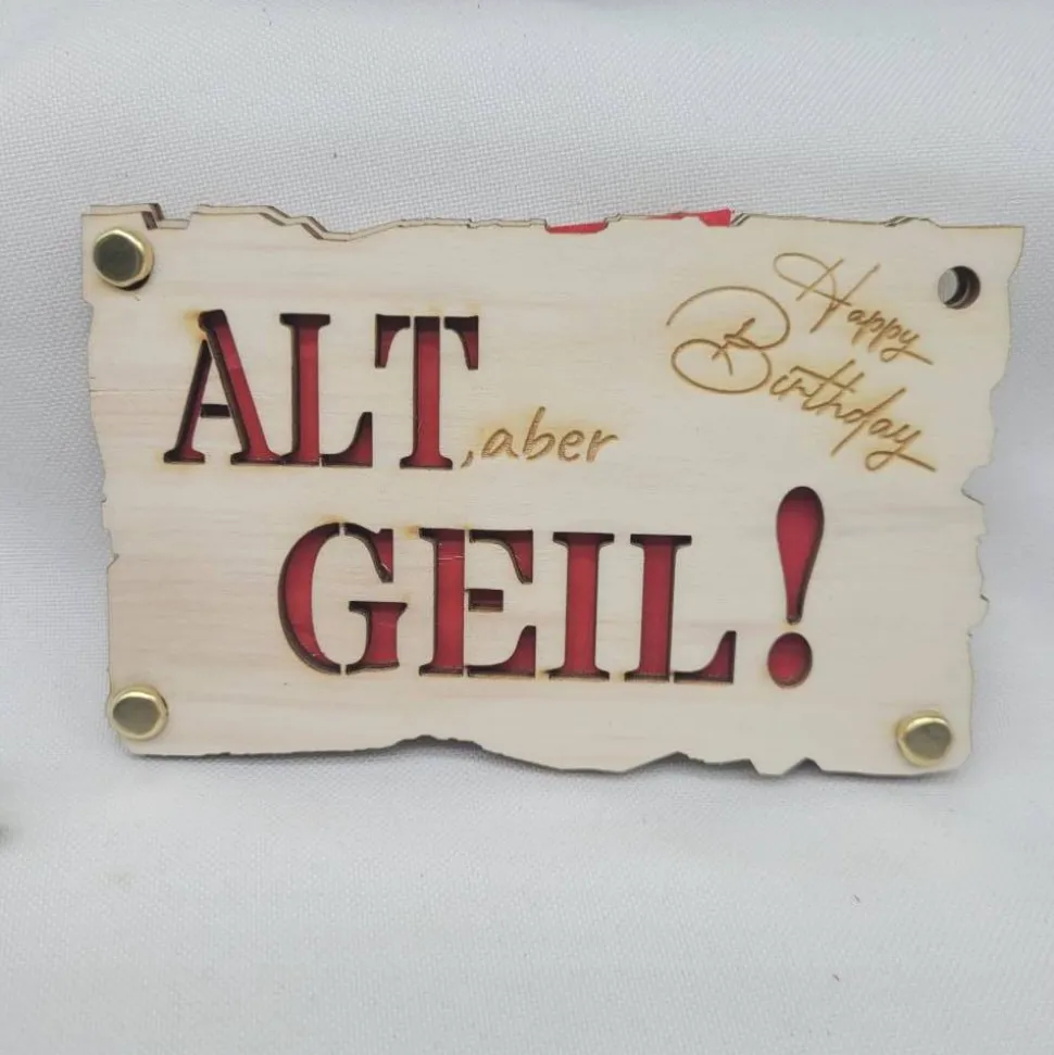 Feiern Sie das Alter mit Stil und Humor dank der „Alt,aber GEIL“ Geldkarte aus Holz. Verschenken Sie Geld mit einer Prise Spaß und zeigen Sie Ihre Wertschätzung auf originelle Weise. Lachen Sie gemeinsam über das Alter und schaffen Sie unvergessliche Momente voller Freude.