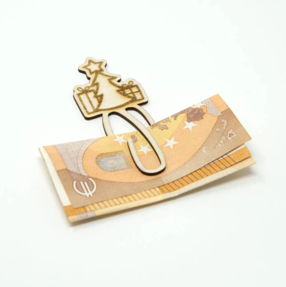 Du weißt nicht, wie du deinen Freunden oder Verwandten „nur“ Geld schenken kannst? Hier ist die Lösung! Unsere Geldspange aus Holz macht aus einem simplen Geldschein ein individuelles und stilvolles Präsent. Damit wird dein Geschenk nicht nur wertvoll, sondern auch einzigartig.