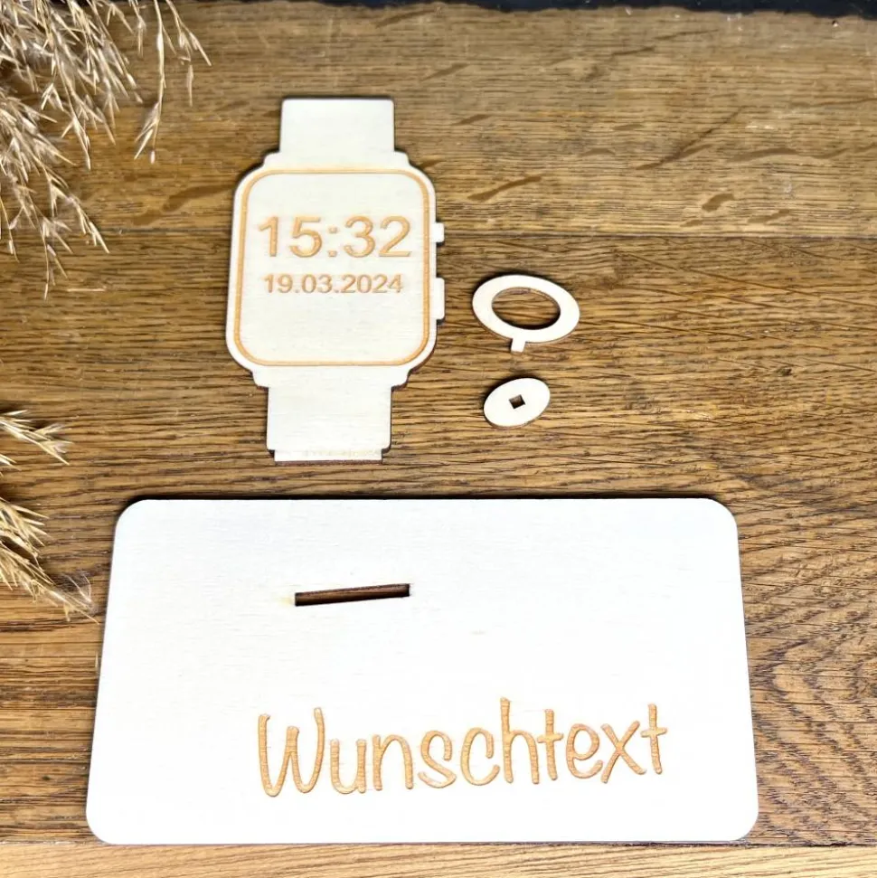 Modern und kreativ! Diese aus Holz gefertigte Smartwatch ist eine originelle Möglichkeit, einen Geldschein zu verschenken. Perfekt für Technikfans und alle, die das Besondere lieben. Mit viel Liebe zum Detail gestaltet, verbindet sie modernes Design mit natürlichem Charme – ein Geschenk, das garantiert begeistert.
