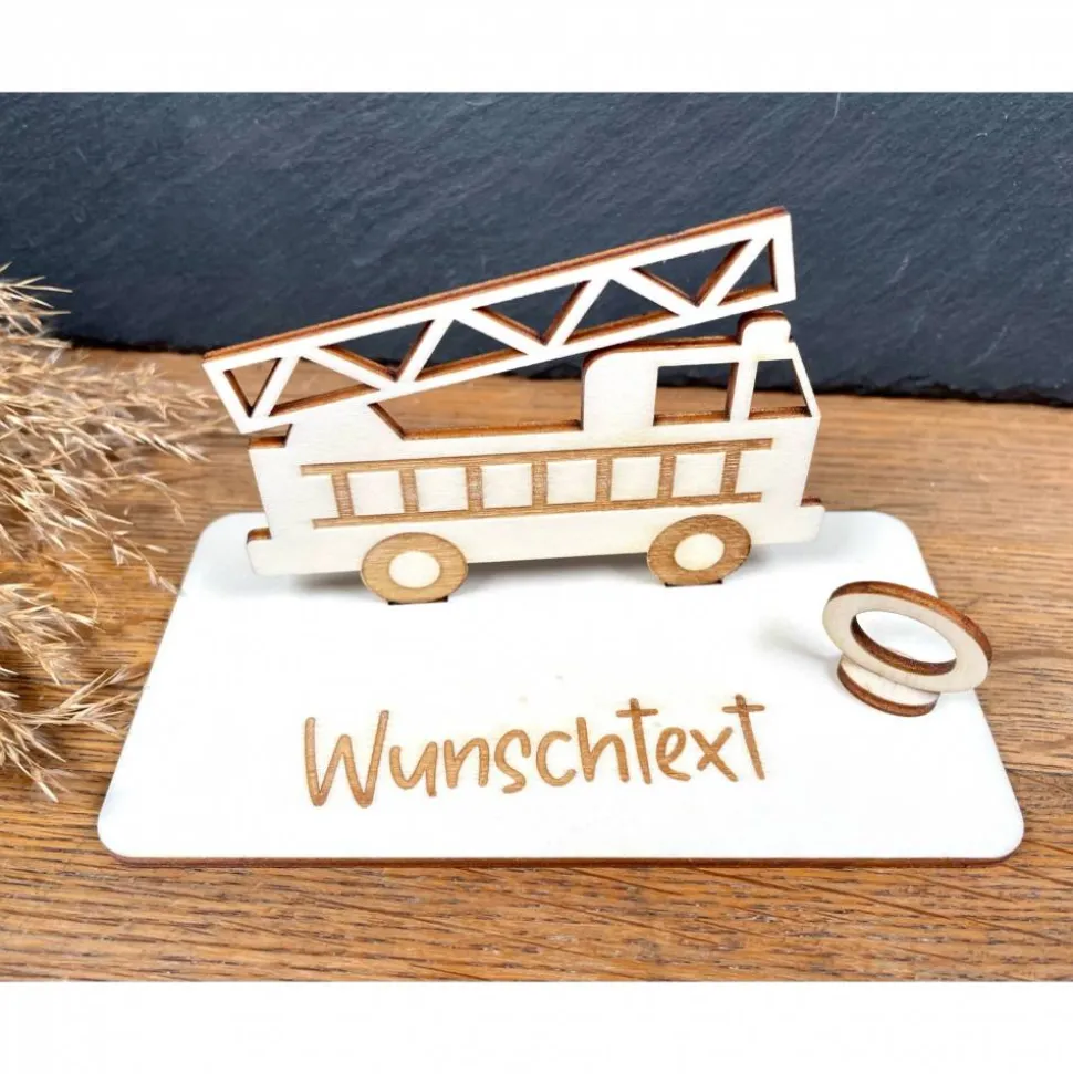 Ein Geschenk, das Helden ehrt! Dieses aus Holz gefertigte Feuerwehrauto ist eine originelle und liebevolle Möglichkeit, einen Geldschein zu verschenken. Perfekt für Feuerwehrleute oder kleine Fans roter Einsatzfahrzeuge – das detailreiche Design bringt Mut, Teamgeist und Leidenschaft perfekt zur Geltung. Ein echtes Highlight mit Herz!