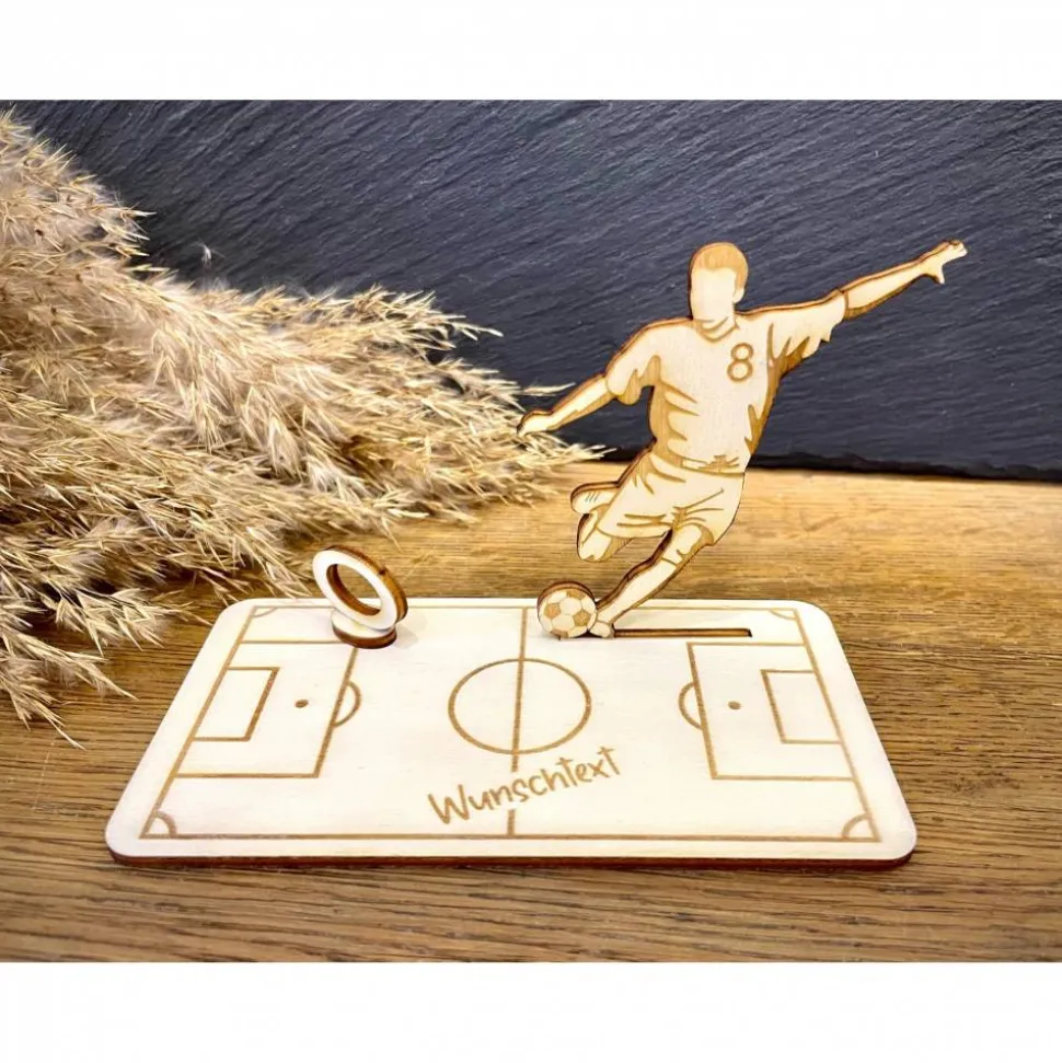 Für alle Fußballfans! Dieser aus Holz gefertigte Fußballspieler ist die perfekte Möglichkeit, einen Geldschein sportlich und originell zu verschenken. Ob für Spieler, Trainer oder Fans – das detailreiche Design bringt die Leidenschaft fürs Spiel wunderbar zum Ausdruck. Ein kreatives Geschenk mit Herz, das garantiert begeistert!