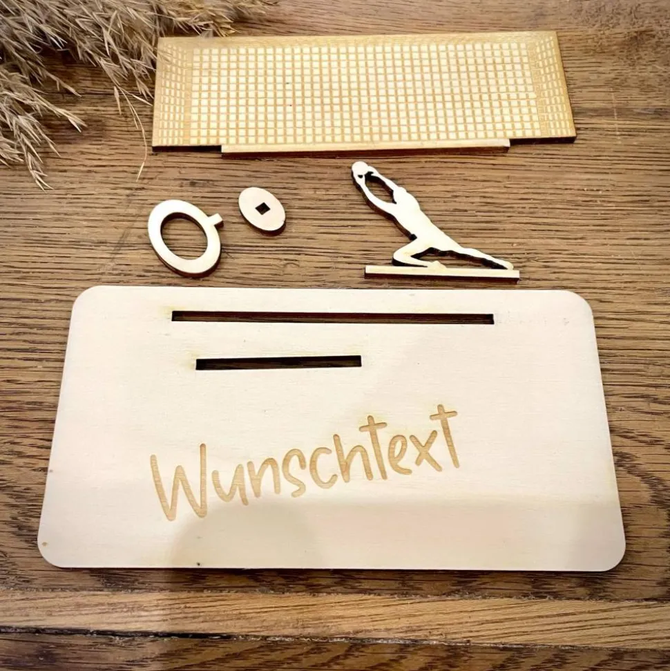 Ein Volltreffer für Fußballfans! Dieser aus Holz gefertigte Torwart ist eine originelle und sportliche Möglichkeit, einen Geldschein zu verschenken. Mit Liebe zum Detail gestaltet, fängt er die Spannung und Leidenschaft des Spiels perfekt ein. Ideal für Spieler, Trainer oder Fans – ein Geschenk, das garantiert begeistert!