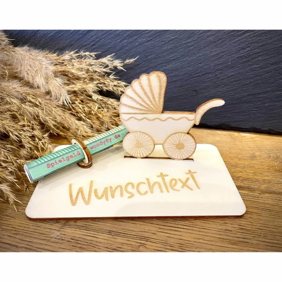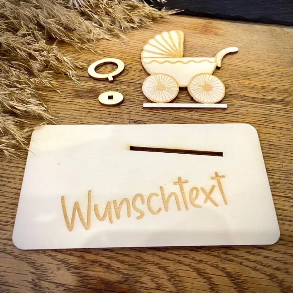 Der Geldscheinhalter besteht aus mehreren Teilen, die zusammengesteckt und verklebt werden. Der Geldscheinhalter kann mit Acrylfarben oder Poscastiften bemalt werden.