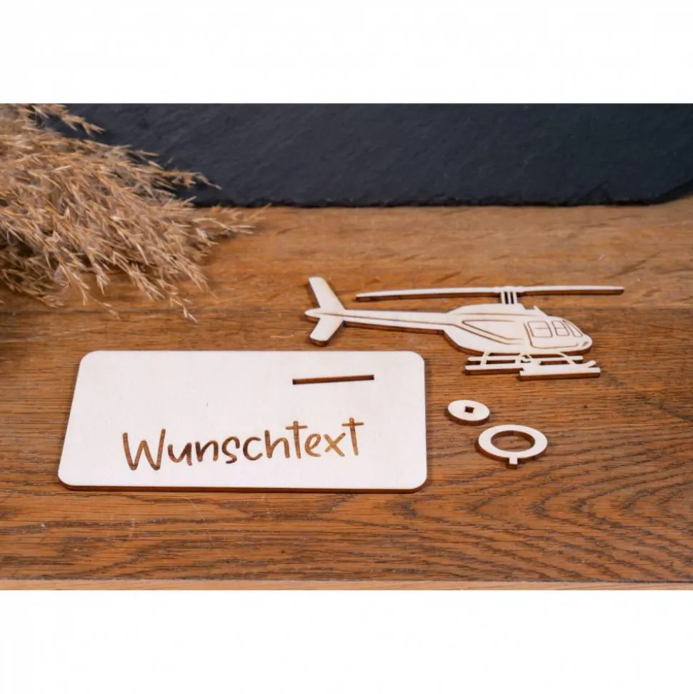 Für alle, die hoch hinaus wollen! Dieser aus Holz gefertigte Helikopter ist eine originelle und kreative Möglichkeit, einen Geldschein zu verschenken. Ob für Technikfans, Abenteurer oder kleine Piloten – das detailreiche Design steht für Freiheit, Action und besondere Erlebnisse. Ein Geschenk mit Wow-Effekt und viel Liebe zum Detail.