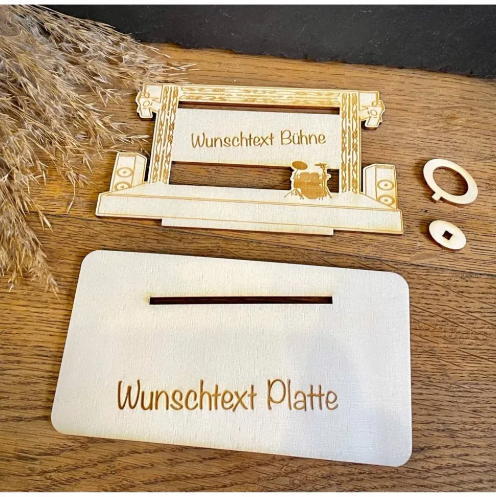 Du suchst das perfekte Geschenk für echte Kulturfans? Mit diesem hochwertigen Holzaufsteller verschenkst du Vorfreude auf das nächste Konzert, Theater oder Musical! Schiebe einfach einen Geldschein in den Geldring und fertig ist deine stilvolle Finanzspritze für das nächste Ticket. Ein bleibendes Erinnerungsstück, das garantiert besser ankommt als ein simpler Umschlag. Viel Spaß beim Verschenken!