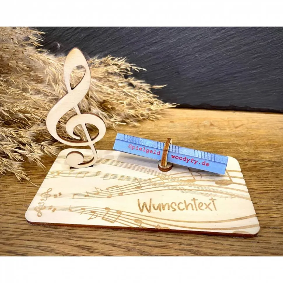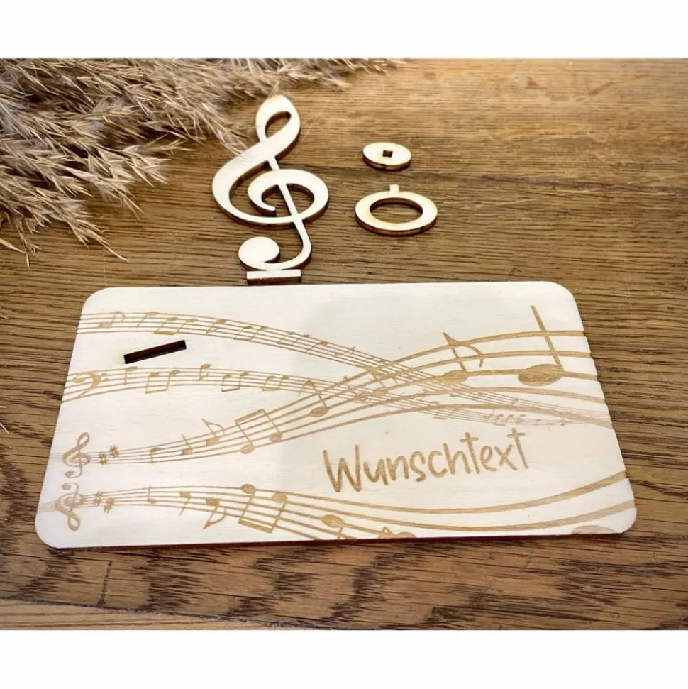 Du möchtest Bares mit Herz und Rhythmus verschenken? Dieser elegante Notenschlüssel aus Holz ist der Star auf jedem Gabentisch! Klemme deinen Geldschein einfach in den Geldring und mache aus einem schnöden Schein ein echtes Highlight. Perfekt für den nächsten Musikunterricht oder das lang ersehnte Instrument. Ein Geschenk, das klingt!