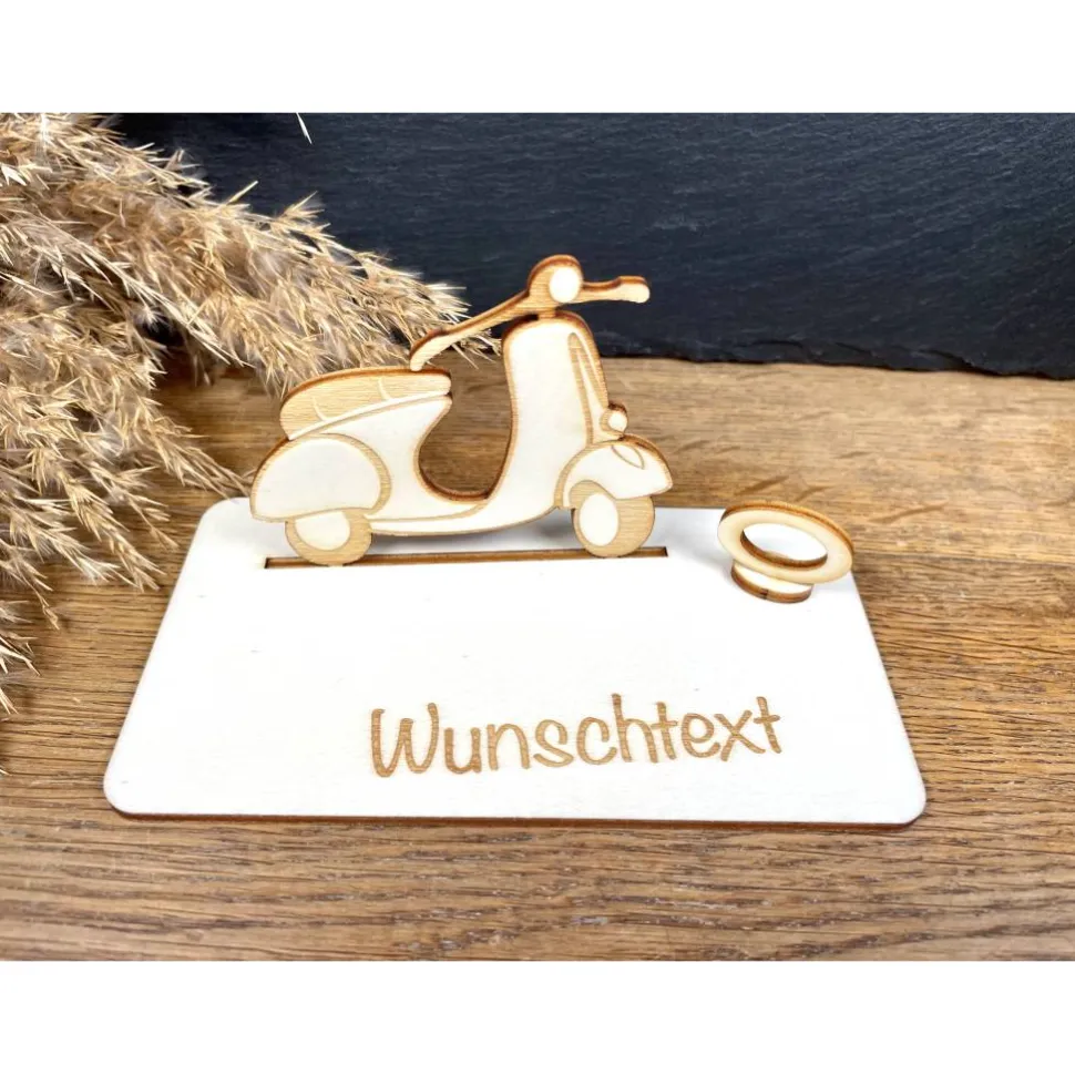 Hol dir das italienische Lebensgefühl nach Hause! Mit diesem handgefertigten Holz-Roller im Retro-Look verschenkst du nicht nur Geld, sondern echte Urlaubsgefühle. Schiebe deinen Geldschein einfach in den vorgesehenen Geldring und fertig ist die stilvolle Finanzspritze für den nächsten Städtetrip oder die eigene Vespa. Ein Muss für Fans von Dolce Vita!