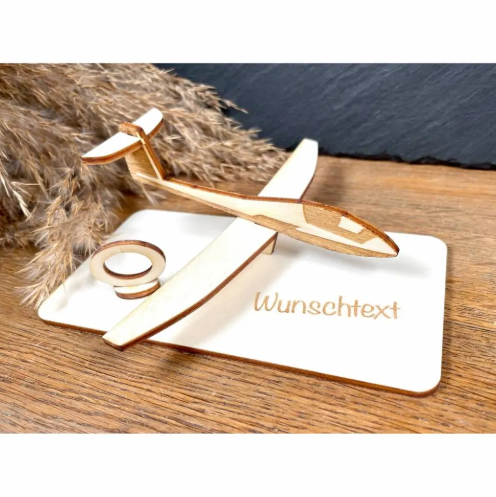 Für alle, die vom Fliegen träumen! Dieser aus Holz gefertigte Segelflieger ist eine besondere und kreative Möglichkeit, einen Geldschein zu verschenken. Er steht für Freiheit, Leichtigkeit und den Blick in die Ferne. Mit viel Liebe zum Detail gestaltet, ist er ein ideales Geschenk für Flugbegeisterte und Abenteurer.