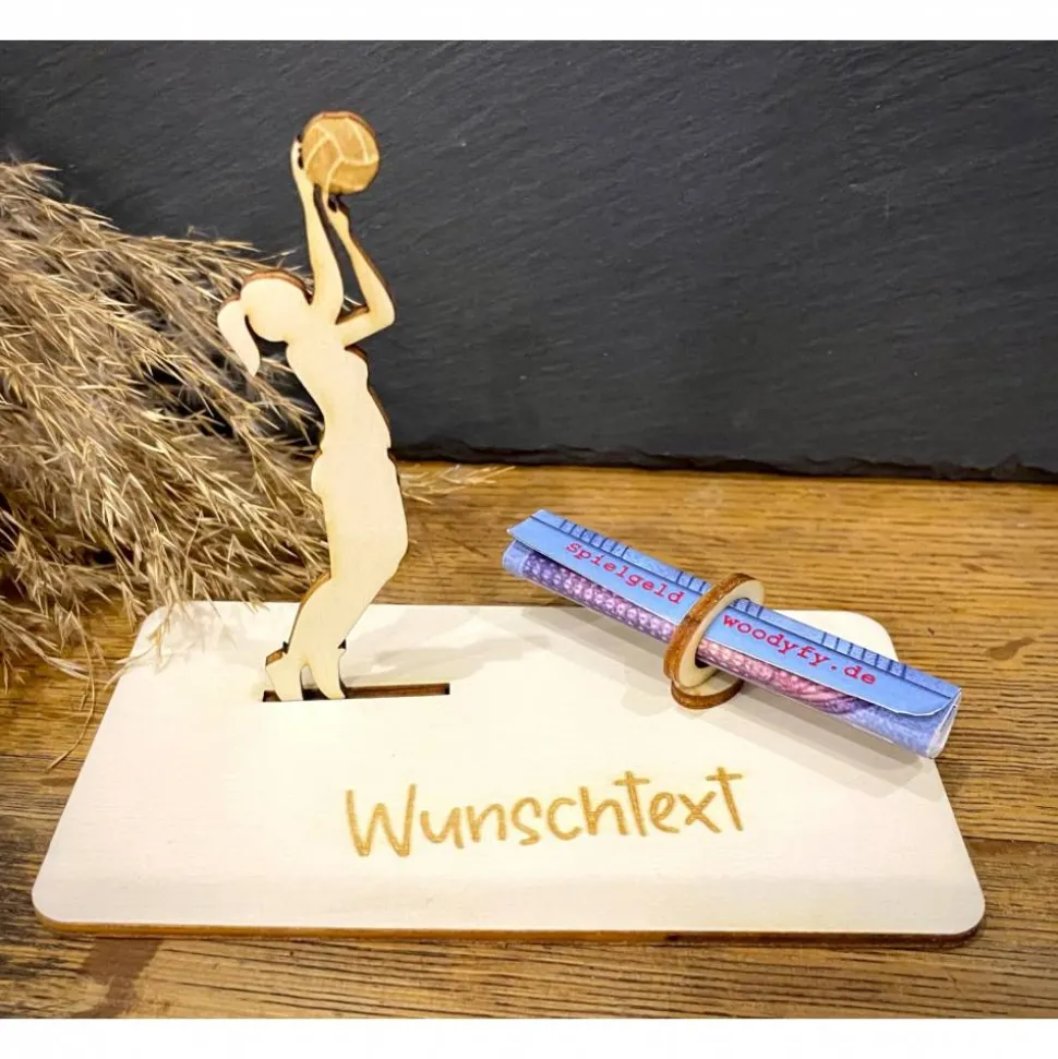 Der Geldscheinhalter besteht aus mehreren Teilen, die zusammengesteckt und verklebt werden. Der Geldscheinhalter kann mit Acrylfarben oder Poscastiften bemalt werden.
