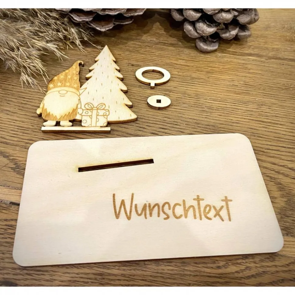 Der Geldscheinhalter besteht aus mehreren Teilen, die zusammengesteckt und verklebt werden. Der Geldscheinhalter kann mit Acrylfarben oder Poscastiften bemalt werden.