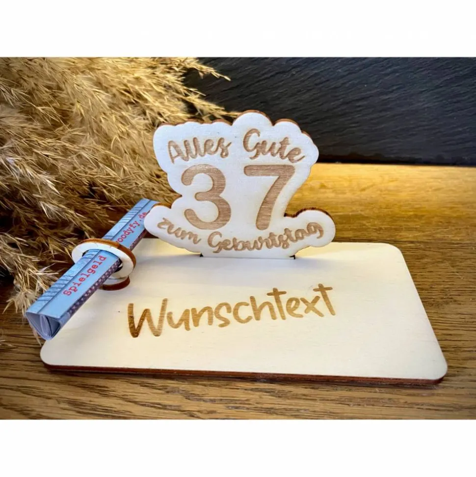 Verschenke Zahlen mit Bedeutung! Diese aus Holz gefertigte Zahl ist eine kreative und stilvolle Möglichkeit, einen Geldschein zu verschenken. Ob zum Geburtstag, Jubiläum oder besonderen Anlass – sie steht für ein wichtiges Datum oder Alter. Liebevoll gestaltet und zeitlos im Design, wird Dein Geschenk persönlich und bleibt lange in Erinnerung.