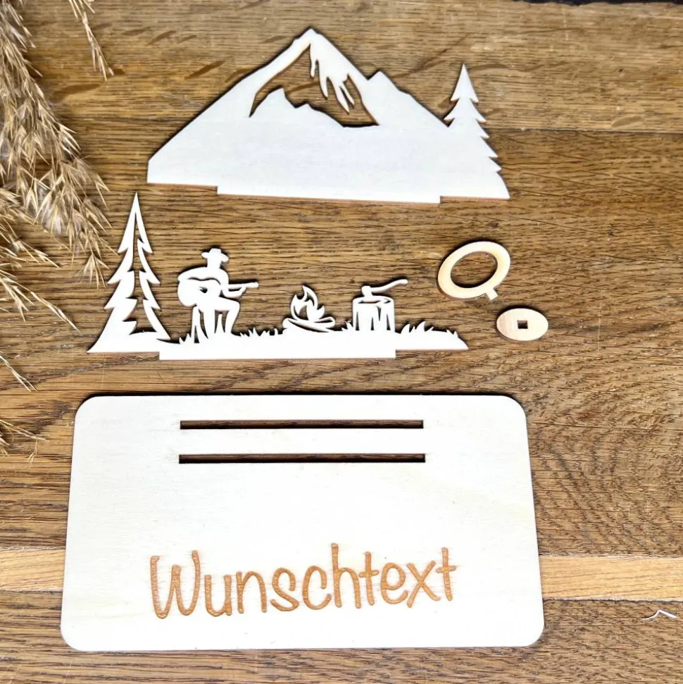 Für alle, die Camping lieben! Dieses aus Holz gefertigte Geschenk ist eine originelle Möglichkeit, einen Geldschein zu verschenken. Ob für begeisterte Camper oder Naturfreunde – das detailreiche Design erinnert an Freiheit, Lagerfeuer und Sternenhimmel. Mit Liebe gefertigt, bringt es Abenteuerlust und Freude ins Geschenk!